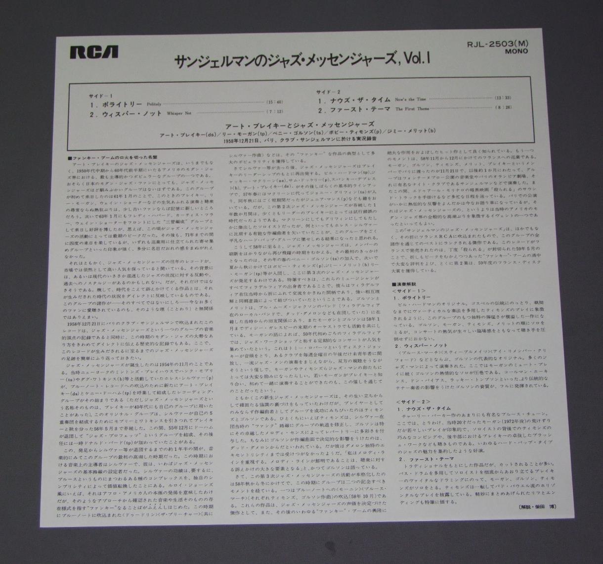 ART BLAKEY & THE JAZZ MESSENGERSアート・ブレイキー&ザ・ジャズ・メッセンジャーズ/JAZZ MESSENGERS AU CLUB SAINT-GERMAIN/VOL.1サンジェルマンのジャズ・メッセンジャーズVOL.1 RJL2503 製造国:日本盤 / Media:LP外観:EX+盤の状態:EX+帯:EX+ 価格(税込):¥1,210(売約済) 送料 7inch:定形外郵便 360円~LP:定形外郵便 660円~送料は、注文の最終画面で確認頂けます。 > > ART BLAKEY & THE JAZZ MESSENGERS/JAZZ MESSENGERS AU CLUB SAINT-GERMAIN/VOL.1 外観 (EX+)特記事項:特記なし。外観EX+の共通説明:中古としては美品、一見してきれいでダメージが軽微。シミ、ヨゴレ、スレ有っても僅か~少し。 盤の状態 (EX+)特記事項:極薄いスリキズ・スレ少しだけ。一見してきれいな状態です。盤EX+の共通説明:盤面の極薄いスリキズ、スレ少し程度 音に出そうなものは無いように見える(極軽微なソフトティック音は除く)。 帯の状態 (EX+):特記なし。 Tweet それぞれの画像をクリックすると、大きい写真が見られます こちらの商品もお勧めです 770円 SADAO WATANABE渡辺貞夫 / MY DEAR LIFEマイ・ディア・ライフ 1,210円 EDDIE CONDON & OTHERSエディ・コンドン・アンド・アザーズ / CHICAGO&ALL THAT JAZZ!シカゴ・アンド・オール・ザット・ジャズ! 1,320円 GATO BARBIERIガトー・バルビエリ / UNDER FIREアンダー・ファイア 770円 MAYNARD FERGUSON ORCH.メイナード・ファーガスン・オーケストラ / PRIMAL SCREAMクロスオーバー・ファーガスン 1,320円 SADAO WATANABE & CHARLIE MARIANO渡辺貞夫&チャーリー・マリアーノ / IBERIAN WALTZイベリアン・ワルツ 3,300円 EDDIE CONDON ALL STARSエディ・コンドン・オール・スターズ / EDDIE CONDON ALL STARS 1945 5LP BOX SETエディ・コンドン・オール・スターズ1945 5枚組 770円 GEORGE LEWISジョージ・ルイス / ON PARADEオン・パレード 1,210円 MODERN JAZZ QUARTET + NEW YORK CHAMBER SYMPHONYMJQ + ニューヨーク・チェンバー・シンフォニー / THREE WINDOWSスリー・ウインドウズ