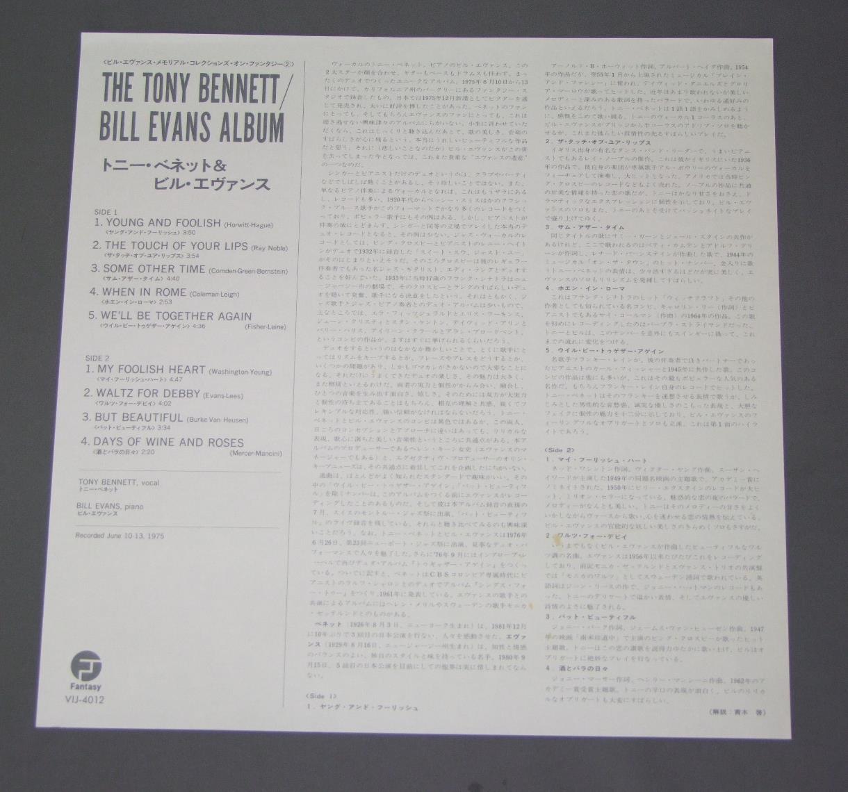 TONY BENNETT & BILL EVANSトニー・ベネット&ビル・エヴァンス/BILL EVANS MEMORAL COLLECTIONS ON FANTASY VIJ4012 製造国:日本盤 / Media:LP外観:EX+盤の状態:EX+帯:EX 価格(税込):¥1,320(売約済) 送料 7inch:定形外郵便 360円~LP:定形外郵便 660円~送料は、注文の最終画面で確認頂けます。 > > TONY BENNETT & BILL EVANS/BILL EVANS MEMORAL COLLECTIONS ON FANTASY 外観 (EX+)特記事項:解説カードにシミが少々。外観EX+の共通説明:中古としては美品、一見してきれいでダメージが軽微。シミ、ヨゴレ、スレ有っても僅か~少し。 盤の状態 (EX+)特記事項:極薄いスリキズ・スレ少しだけ。一見してきれいな状態です。盤EX+の共通説明:盤面の極薄いスリキズ、スレ少し程度 音に出そうなものは無いように見える(極軽微なソフトティック音は除く)。 帯の状態 (EX):特記なし。 Tweet それぞれの画像をクリックすると、大きい写真が見られます こちらの商品もお勧めです 770円 SADAO WATANABE渡辺貞夫 / MY DEAR LIFEマイ・ディア・ライフ 1,320円 SADAO WATANABE & CHARLIE MARIANO渡辺貞夫&チャーリー・マリアーノ / IBERIAN WALTZイベリアン・ワルツ 770円 GEORGE LEWISジョージ・ルイス / AT CLUB HANGOVER VOL1アット・クラブ・ハングオーヴァー VOL1 1,210円 WILLIE SMITH - JESS STACY - JOE SULLIVANジェス・ステイシー - ウィリイ・スミス - ジョー・サリバン / CHAIRMEN OF THE BOARD VOL2ピアノ・ジャズの競演 第2集 1,210円 KARIN KROC & ARCHIE SHEPPカーリン・クローグ&アーチー・シェップ / HI-FLYハイ・フライ 1,320円 PAUL WINTER SEXTETポール・ウィンター・セクステット / JAZZ MEETS THE FOLK SONG 60s ISUUEフォーク・モダン・ジャズ ペラジャケ 1,320円 GATO BARBIERIガトー・バルビエリ / EL PAMPEROエル・パンペーロ 1,980円 EIJI KITAMURA北村英治 / APRIL DATE ( MASTER SOUND PRESSING )エイプリル・デイト (マスターサウンド盤)