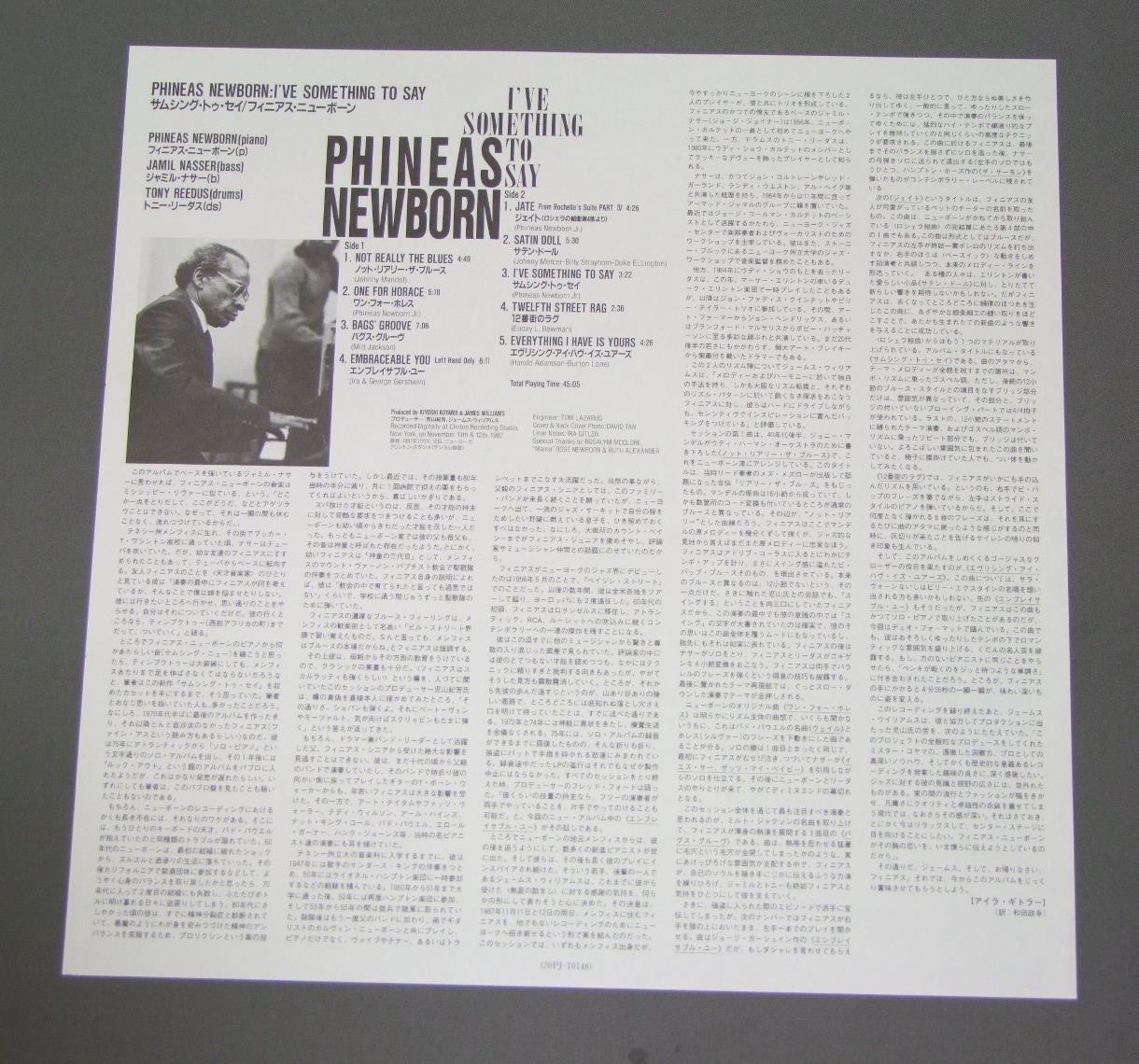 PHINEAS NEWBORNフィニアス・ニューボーン/I`VE SOMETHING TO SAYサムシング・トゥ・セイ 20PJ10148 製造国:日本盤 / Media:LP外観:EX盤の状態:EX+帯:EX 価格(税込):¥1,100(売約済) 送料 7inch:定形外郵便 360円~LP:定形外郵便 660円~送料は、注文の最終画面で確認頂けます。 > > PHINEAS NEWBORN/I`VE SOMETHING TO SAY 外観 (EX)特記事項:特記なし。外観EXの共通説明:ダメージが限定的。中古品としては保存状態がよい方。シミ、ヨゴレ、スレ 少し~軽度。 盤の状態 (EX+)特記事項:極薄いスリキズ・スレ少しだけ。一見してきれいな状態です。盤EX+の共通説明:盤面の極薄いスリキズ、スレ少し程度 音に出そうなものは無いように見える(極軽微なソフトティック音は除く)。 帯の状態 (EX):表側の背側に日焼け退色。 Tweet それぞれの画像をクリックすると、大きい写真が見られます こちらの商品もお勧めです 1,540円 TEDDY WILSONテデイ・ウイルソン / THE TEDDY WILSONザ・テデイ・ウイルソン 660円 JACQUES LOUSSIERジャック・ルーシェ / PLAY BACHプレイ・バッハ 1,320円 MONTY ALEXANDER TRIOモンティ・アレキサンダー / MONTREUX ALEXANDERアット・モントルー 770円 SONYA ROBINSONソニア・ロビンソン / SONYAソニア 1,650円 ALBERT AYLERアルバート・アイラー / VOLUME 1ラスト・レコーディング VOL1 990円 JAMES NEWTONジェームズ・ニュートン / DAYDREAMデイドリーム 990円 MODERN JAZZ QUARTETモダン・ジャズ・カルテット / TOGETHER AGAINトゥゲザー・アゲイン 440円 GARY BURTON - SONNY ROLLINS - CLARK TERRYG.バートン - S.ロリンズ - C.テリー / 3 IN JAZZスリー・イン・ジャズ