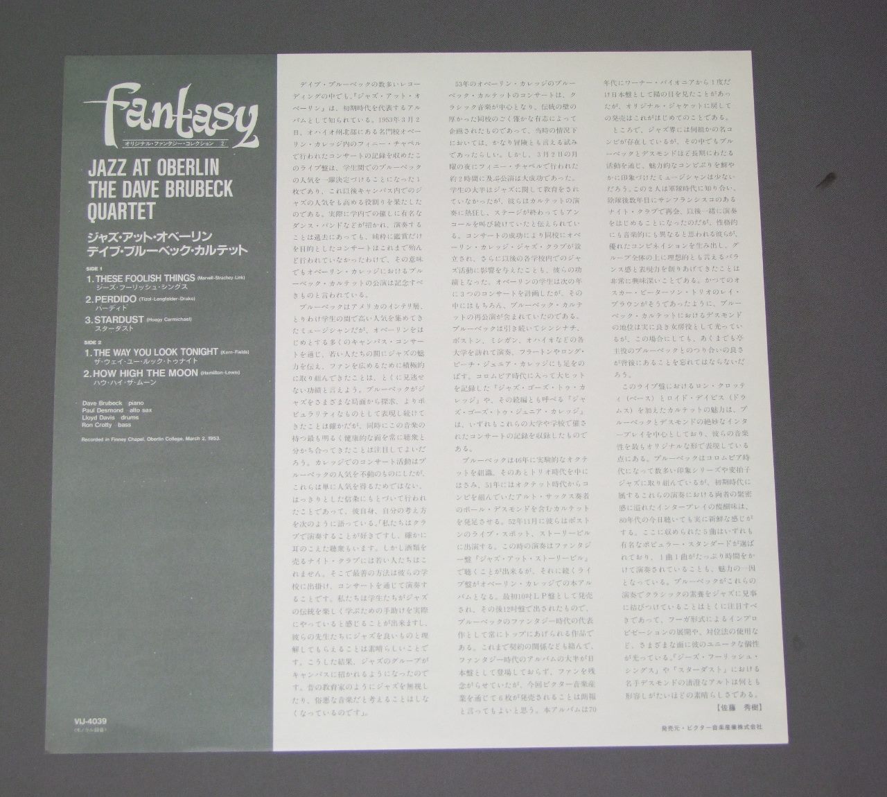 DAVE BRUBECK QUARTETデイブ・ブルーベック・カルテット/JAZZ AT OBERLINジャズ・アット・オベーリン VIJ4039 製造国:日本盤 / Media:LP外観:EX盤の状態:EX帯:EX+ 価格(税込):¥1,210(売約済) 送料 7inch:定形外郵便 360円~LP:定形外郵便 660円~送料は、注文の最終画面で確認頂けます。 > > DAVE BRUBECK QUARTET/JAZZ AT OBERLIN 外観 (EX)特記事項:裏ジャケ上ヘリ付近に薄い日焼け。外観EXの共通説明:ダメージが限定的。中古品としては保存状態がよい方。シミ、ヨゴレ、スレ 少し~軽度。 盤の状態 (EX)特記事項:薄いスリキズ・スレ少しある感じ。一見してきれいな印象です。盤EXの共通説明:盤面のスリキズが薄いものが少し~軽度 音に出そうなものは無いように見える(軽微なソフトティック音は除く)。 帯の状態 (EX+):特記なし。 Tweet それぞれの画像をクリックすると、大きい写真が見られます こちらの商品もお勧めです 1,210円 WYNTON KELLYウイントン・ケリー / KELLY BLUEケリー・ブルー 770円 JACQUES LOUSSIER TRIOジャック・ルーシェ・トリオ / PLAY BACH VOL4プレイ・バッハ第4集 770円 VARIOUS ARTISTSエドモンド・ホール他 / 52nd STREET SESSIONS52番街セッションズ 1,650円 COZY POWELLコージー・パウエル / TILTサンダーストーム 770円 SINGERS UNLIMITEDシンガーズ・アンリミテッド / CAPELLAア・カペラ 1,540円 TEDDY WILSONテデイ・ウイルソン / THE TEDDY WILSONザ・テデイ・ウイルソン 1,210円 RAY BROWN & MILT JACKSONレイ・ブラウンとミルト・ジャクソン / BROWN & JACKSON 990円 OSCAR PETERSON TRIOオスカー・ピーターソン・トリオ / IN TUNEイン・チューン