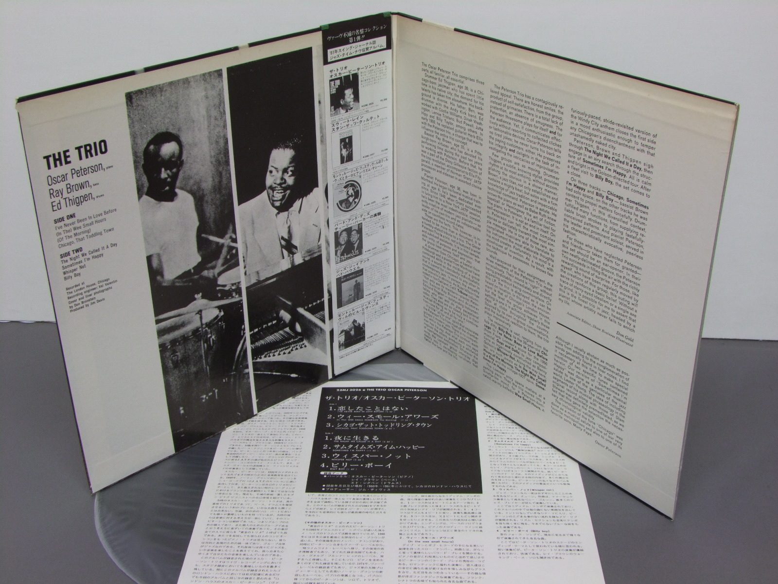 OSCAR PETERSONオスカー・ピーターソン・トリオ/TRIOトリオ 23MJ3026 製造国:日本盤 / Media:LP外観:EX盤の状態:EX+帯:EX 価格(税込):¥1,257(売約済) 送料 7inch:定形外郵便 360円~LP:定形外郵便 660円~送料は、注文の最終画面で確認頂けます。 > > OSCAR PETERSON/TRIO 外観 (EX)特記事項:上ヘリにスレが少々。見開きの上の方に薄い日焼け感軽。外観EXの共通説明:ダメージが限定的。中古品としては保存状態がよい方。シミ、ヨゴレ、スレ 少し~軽度。 盤の状態 (EX+)特記事項:極薄いスリキズ・スレ少しだけ。一見してきれいな状態です。盤EX+の共通説明:盤面の極薄いスリキズ、スレ少し程度 音に出そうなものは無いように見える(極軽微なソフトティック音は除く)。 帯の状態 (EX):表背側に日焼け退色。 Tweet それぞれの画像をクリックすると、大きい写真が見られます こちらの商品もお勧めです 1,210円 BENNY GOODMAN TRIOベニーグッドマントリオ / PLAYS FOR FLETCHER HENDERSON FUNDプレイズ・フォー・ザ・フィレッチャー・ヘンダーソン 770円 TOSHIYUKI ICHIMURA市村俊幸 / MY LIFE MY PIANO 770円 TERUMASA HINO日野皓正 / PYRAMIDピラミッド 770円 MATT DENNIS & RED NORVOマット・デニス & レッド・ノーヴォ / SOME OF MY FAVORITESサム・オブ・マイ・フェイバリッツ 1,210円 TERUMASA HINO日野皓正 / PYRAMIDピラミット 1,210円 BUD FREEMAN`S SUMMA CUM LAUDE ORCH.バド・フリーマンズ・スマ・カム・ロード・オーケストラ / CHICAGO AUSTIN HIGH SCHOOL JAZZ IN HI-FIシカゴ・オースチン・ハイスクール・ジャズ 1,650円 NORIO MAEDA前田憲男 / SOUND IN VICTRONSOUND IN VICTRON 1,320円 BUD POWELLバド・パウエル / BUD POWELL TRIOバド・パウエル トリオ