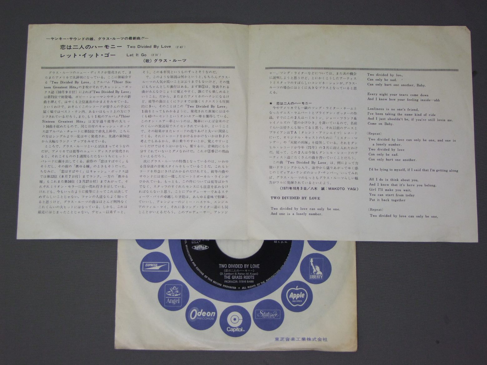 GRASS ROOTSグラス・ルーツ/TWO DIVIDED BY LOVE恋は二人のハーモニー HR2922 製造国:日本盤 / Media:7inch外観:EX-盤の状態:EX 価格(税込):¥770(売約済) 送料 7inch:定形外郵便 360円~LP:定形外郵便 660円~送料は、注文の最終画面で確認頂けます。 > > GRASS ROOTS/TWO DIVIDED BY LOVE 外観 (EX-)特記事項:裏ジャケや見開きにシミ。ヨレも多少有り。外観EX-の共通説明:ダメージ軽度~多少。 中古品としては普通の状態。シミ、ヨゴレ、スレなど軽く~多少。 盤の状態 (EX)特記事項:薄いスリキズ・スレ少しある程度。一見してきれいな状態です。盤EXの共通説明:盤面のスリキズが薄いものが少し~軽度 音に出そうなものは無いように見える(軽微なソフトティック音は除く)。 Tweet それぞれの画像をクリックすると、大きい写真が見られます こちらの商品もお勧めです 1,210円 SILVER CONDORシルバー・コンドル / SILVER CONDOR夜明けのテイク・オフ 990円 SANTANAサンタナ / AMIGOSアミーゴ !(同胞) 1,650円 SERGIO MENDES & BRAZIL `66セルジオ・メンデスとブラジル66 / LOOK AROUNDルック・アラウンド 1,320円 KENNY ROGERS AND THE FIRST EDITIONケニー・ロジャースとファースト・エディション / TRANSITIONトランジション 770円 DOOBIE BROTHERS / WHAT WERE ONCE VICES ARE NOW HABITS 990円 GRAND FUNKグランド・ファンク・レイルロード / WE`RE AN AMERICAN BANDECS80665アメリカン・バンド 770円 SANTANAサンタナ / INNER SECRETS太陽の秘宝 990円 DONNY & MARIE / WINNING COMBINATION