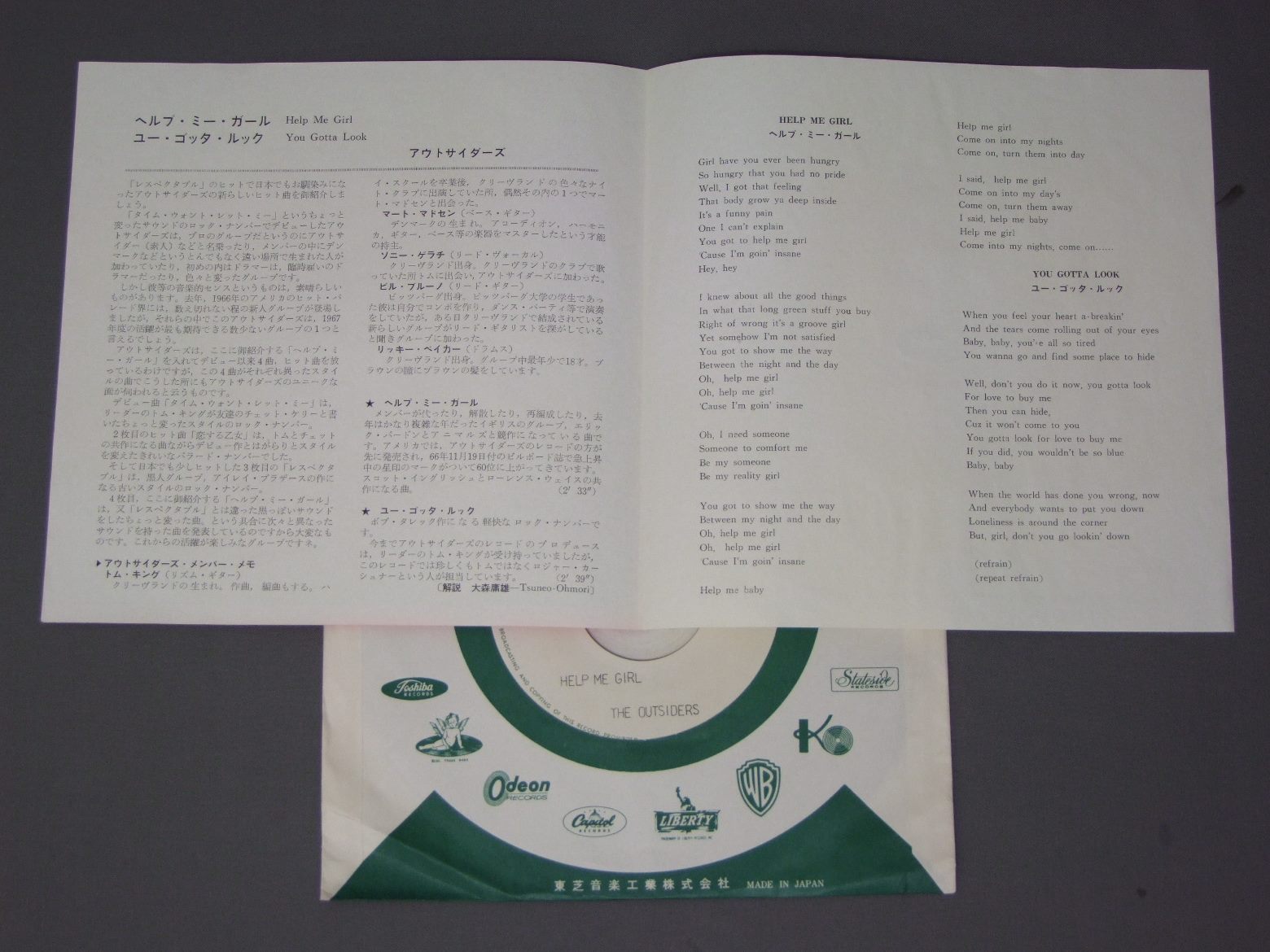 アウトサイダーズ/HELP ME GIRLヘルプ・ミー・ガール 赤盤 CR1636 製造国:日本盤 / Media:7inch外観:EX+盤の状態:VG+ 価格(税込):¥2,420(売約済) 送料 7inch:定形外郵便 360円~LP:定形外郵便 660円~送料は、注文の最終画面で確認頂けます。 > > /HELP ME GIRL 外観 (EX+)特記事項:特記無し。コンディションリストを参照下さい。外観EX+の共通説明:中古としては美品、一見してきれいでダメージが軽微。シミ、ヨゴレ、スレ有っても僅か~少し。 盤の状態 (VG+)特記事項:薄いスリキズ・スレ多少ある感じ。殆どが軽微なものの様子です。盤にソリが有り針が多少動きますが、トレースは可能。プレイは何とか可能です。盤VG+の共通説明:盤面にスリキズが多少~やや有り、音に出そうなものも多少ある。 その他:白見本盤 Tweet それぞれの画像をクリックすると、大きい写真が見られます こちらの商品もお勧めです 1,320円 PLAYERプレイヤー / SPIES OF LIFEスパイズ・オブ・ライフ 990円 BYREDSバーズ / BYRDSバーズ 770円 SANTANAサンタナ / CARAVANSERAIキャラバンサライ 770円 TOTO / ISOLATION + STICKERSアイソレーション 1,320円 PARRIDGE FAMILYパートリッジ・ファミリー / SOUND MAGAZINE夢見るデビット 1,980円 STYXスティクス / CAUGHT IN THE ACT LIVEスティクス・ライブ 440円 AIR SUPPLYエア・サプライ / ONE THAT YOU LOVEシーサイド・ラブ 1,210円 THREE SUNSスリー・サンズ / GOLDEN ALBUMゴールデン・アルバム
