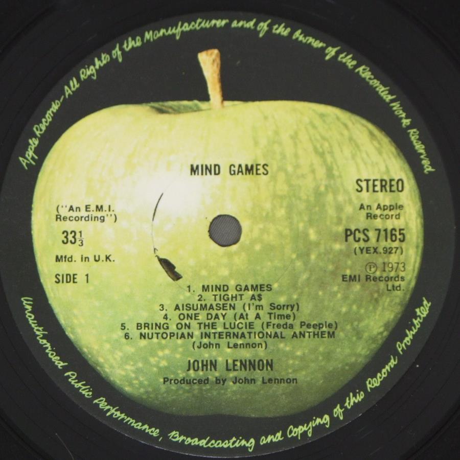 JOHN LENNON/MIND GAMESマト1 PCS7165 製造国:英国盤 / Media:LPMatrix:1U/4/TH | 1U/3/AC外観:EX盤の状態:EX 価格(税込):¥6,050(売約済) 送料 7inch:定形外郵便 360円~LP:定形外郵便 660円~送料は、注文の最終画面で確認頂けます。 > > JOHN LENNON/MIND GAMES 外観 (EX)特記事項:背や上ヘリにスレ多少有り。背上下角スレもやや有りです。ジャケ表面は表裏共にレコードリングスレ多少有りますが、スリキズやよごれ等は薄い感じ。オリジナルインナーは薄いよごれが少しありますが、抜けも無くしっかりした感じ。レコード取り出し口端でヨレが少し。外観EXの共通説明:ダメージが限定的。中古品としては保存状態がよい方。シミ、ヨゴレ、スレ 少し~軽度。 盤の状態 (EX)特記事項:薄いスリキズ・スレ軽くある感じ。ほとんどが軽微なものの様子で、一見して中々きれいな印象です。曲間など、静かなところを中心に聴いて見ましたが、チリプチ少ない綺麗な再生具合でした。 盤EXの共通説明:盤面のスリキズが薄いものが少し~軽度 音に出そうなものは無いように見える(軽微なソフトティック音は除く)。 Tweet それぞれの画像をクリックすると、大きい写真が見られます こちらの商品もお勧めです 5,500円 BEATLES / AT THE HOLLYWOOD BOWL 5,500円 JOHN LENNON / SHAVED FISH 5,500円 GEORGE HARRISON / LIVING IN THE MATERIAL WORLD 5,500円 GEORGE HARRISON / THIRTY THREE & 1/3 4,950円 JOHN & YOKO - PLASTIC ONO BANDF / SOME TIME IN NEW YORK CITY