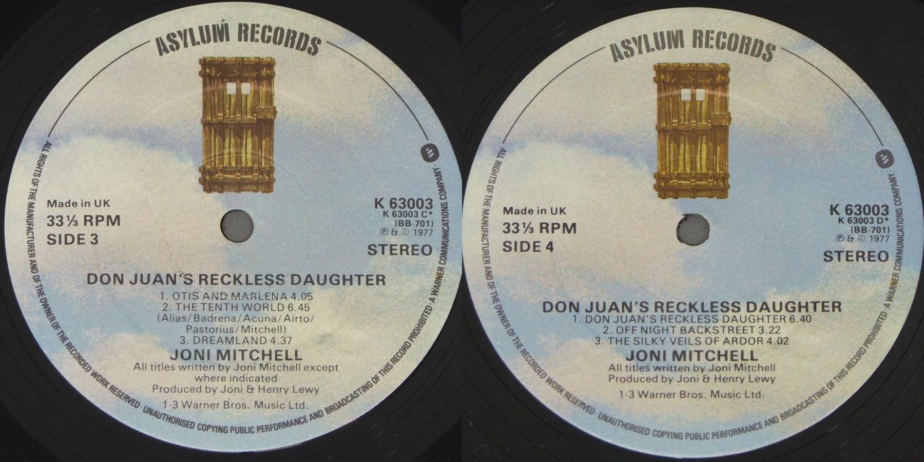 JONI MITCHELL/DON JUAN`S RECKLESS DAUGHTER K63003 製造国:英国盤 / Media:LPMatrix:A-4 | B-2 | C-1 | D-1 手彫り外観:EX盤の状態:EX- 価格(税込):¥3,850(売約済) 送料 7inch:定形外郵便 360円~LP:定形外郵便 660円~送料は、注文の最終画面で確認頂けます。 レコード検索 > J-POP > JONI MITCHELL/DON JUAN`S RECKLESS DAUGHTER 外観 (EX)特記事項:角スレやや有り。底スレ多めです。上ヘリもスレ多少有り。ジャケ表面は多少薄いスレよごれ軽は有る感じですが、全体的にはスレやスリキズ、よごれ等は薄い感じです。見開きもスレ等は少ない感じ。オリジナルインナーは2枚ともきれいな状態。抜けもないです。外観EXの共通説明:ダメージが限定的。中古品としては保存状態がよい方。シミ、ヨゴレ、スレ 少し~軽度。 盤の状態 (EX-)特記事項:薄いスリキズ・スレ少しある程度。A2の最後に4回ぐらい音に出る極小キズと、B3に少しスレたような所が有りますが、数回僅かなソフトプチ程度で気にならない感じでした。全体的にスレ、スリキズ少なく一見してきれいな感じです。曲間など、静かなところを中心に聴いて見ましたが、チリノイズ少ないきれいな再生具合でした。盤EX-の共通説明:盤面のスリキズが多少有り。音に出そうなものは殆ど無いように見える~さほど気にならないぐらいの軽いプチ数カ所程度。 その他:音に出る所以外はEXです。 Tweet それぞれの画像をクリックすると、大きい写真が見られます こちらの商品もお勧めです 4,950円 JONI MITCHELL / DOG EAT DOG 5,060円 JONI MITCHELL / CHALK MARK IN A RAIN STORM 3,850円 NICO / THE END 4,950円 SANDY DENNY / RENDEZVOUS 4,400円 JONI MITCHELL / DOG EAT DOG 7,700円 SUSAN MAUGHAN / I WANNA BE BOBBY`S GIRL