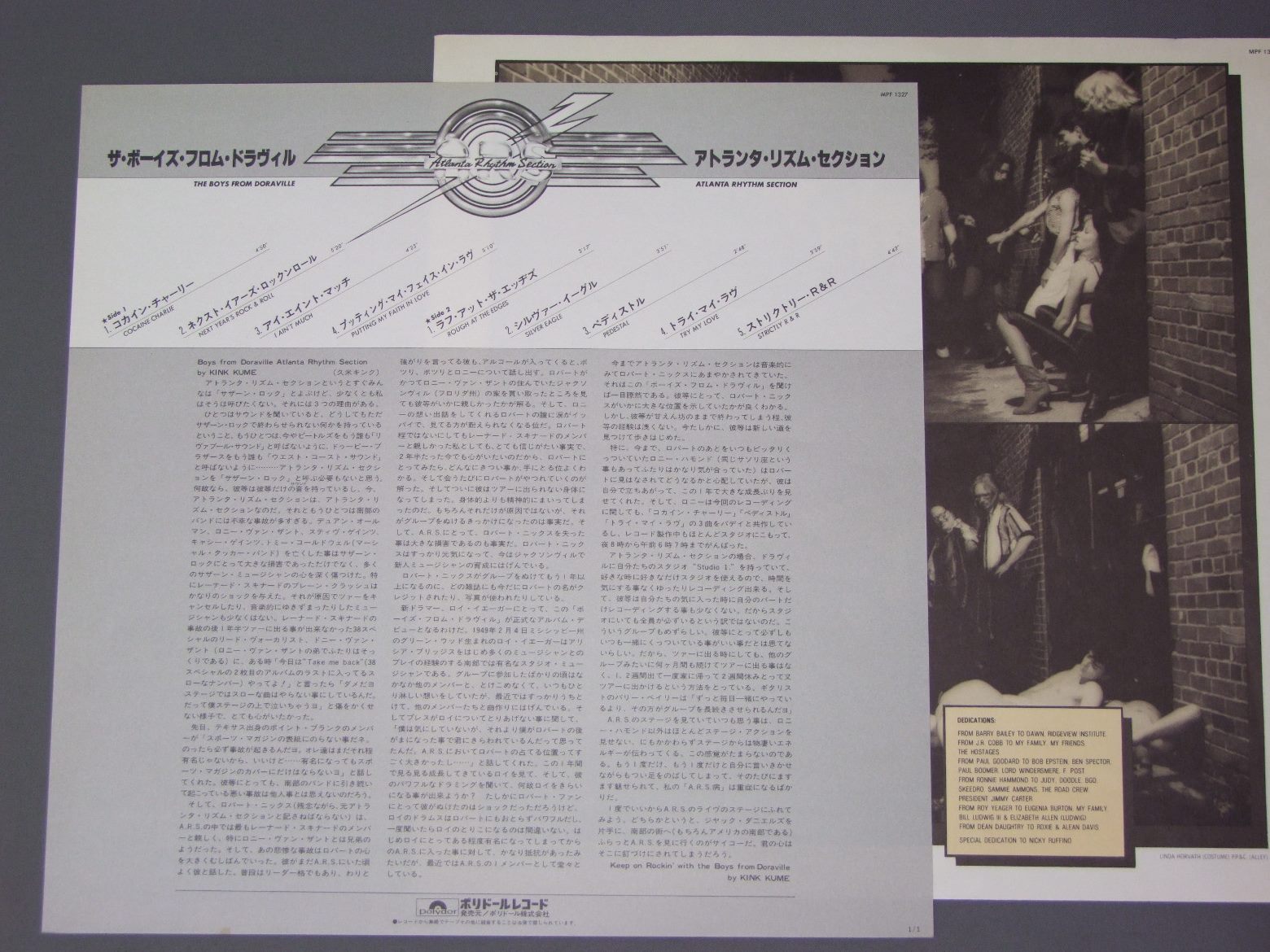 ATLANTA RHYTHM SECTIONアトランタ・リズム・セクション/BOYS FROM DORAVILLEボーイズ・フロム・ドラヴィル MPF1327 製造国:日本盤 / Media:LP外観:EX盤の状態:EX+帯:EX 価格(税込):¥1,257(売約済) 送料 7inch:定形外郵便 360円~LP:定形外郵便 660円~送料は、注文の最終画面で確認頂けます。 > > ATLANTA RHYTHM SECTION/BOYS FROM DORAVILLE 外観 (EX)特記事項:背に日焼け退色。外観EXの共通説明:ダメージが限定的。中古品としては保存状態がよい方。シミ、ヨゴレ、スレ 少し~軽度。 盤の状態 (EX+)特記事項:極薄いスリキズ・スレ少しだけ。一見してきれいな状態です。盤EX+の共通説明:盤面の極薄いスリキズ、スレ少し程度 音に出そうなものは無いように見える(極軽微なソフトティック音は除く)。 帯の状態 (EX):特記なし。 Tweet それぞれの画像をクリックすると、大きい写真が見られます こちらの商品もお勧めです 1,210円 STYX酢亭久洲 / REPPOO烈風 770円 REO SPEED WAGONREOスピード・ワゴン / REO SPEED WAGON LIVEREO ライブ 嵐の中へ 1,210円 SANTANAサンタナ / ZEBOP!ジーバップ! 660円 SNEAKERスニーカー / SNEAKER想い出のスニーカー 1,320円 KENNY ROGERS & THE FIRSY EDITIONケニー・ロジャーズとファースト・エディション / TELL IT ALL BROTHERテル・イット・オール・ブラザー 770円 MONKEESモンキーズ / PISCES AQUARIUS CAPRICORN &JONES LTD.スター・コレクター 880円 SANTANAサンタナ / SANTANAサンタナのすべて 1,320円 CATE BROTHERS BANDケイト・ブラザーズ・バンド / RENDEZVOUSランデヴー