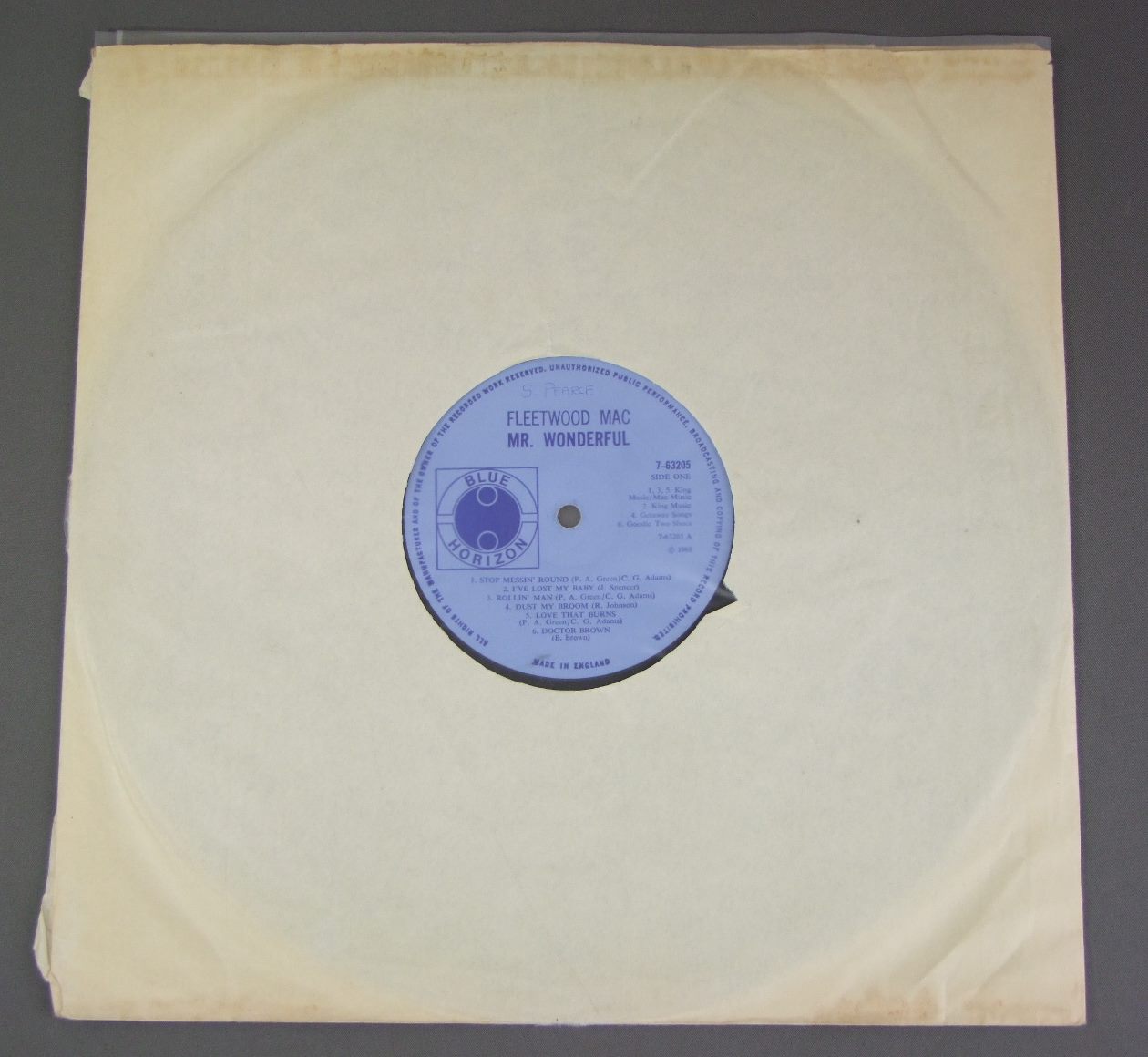 FLEETWOOD MAC/MR WONDERFULMONO 7-63205 製造国:英国盤 / Media:LPMatrix:A1 | B1外観:EX盤の状態:VG+ 価格(税込):¥9,900(売約済) 送料 7inch:定形外郵便 360円~LP:定形外郵便 660円~送料は、注文の最終画面で確認頂けます。 > > FLEETWOOD MAC/MR WONDERFUL 外観 (EX)特記事項:背上下角でスレ多少有り。背スレ少々。裏ジャケに長目のスリキズが一本ありますが、ジャケ表面は全体的にスレやスリキズ、よごれ等は薄い感じ。コーティングのヨレシワも少なめです。外観EXの共通説明:ダメージが限定的。中古品としては保存状態がよい方。シミ、ヨゴレ、スレ 少し~軽度。 盤の状態 (VG+)特記事項:薄いスリキズ・細かい表面スレ多少ある感じ。プチ出そうな所も何箇所か有りますが、全体的には軽微なものが中心の様子です。所々聴いてみましたが、チリプチ軽度。音はしっかりなっている様子でした。盤VG+の共通説明:盤面にスリキズが多少~やや有り、音に出そうなものも多少ある。 Tweet それぞれの画像をクリックすると、大きい写真が見られます こちらの商品もお勧めです 3,300円 ABBA / GREATEST HITS 16,500円 GRAPEFRUIT / DEEP WATER 8,250円 MARK BOLAN / BOLAN`S ZIP GUN 4,400円 BAD COMPANY / STRAIGHT SHOOTER 8,250円 FREE / AT LAST 3,300円 ABBA / GREATEST HITS 3,520円 PIGEON PIE / LIEUTENANT PIGEON 4,400円 BAD COMPANY / RUN WITH THE PACK