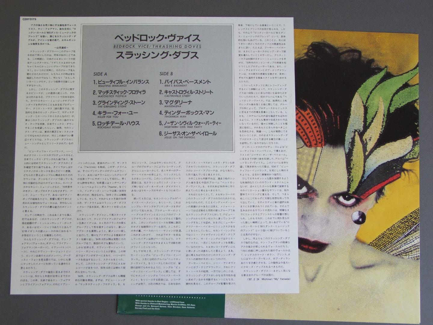 BEDROCK VICEベットロック・ヴァイス/THRASHING DOVESスラッシング・ダブス C28Y3175 製造国:日本盤 / Media:LP外観:EX+盤の状態:EX+帯:EX+ 価格(税込):¥1,100(売約済) 送料 7inch:定形外郵便 360円~LP:定形外郵便 660円~送料は、注文の最終画面で確認頂けます。 > > BEDROCK VICE/THRASHING DOVES 外観 (EX+)特記事項:特記なし。外観EX+の共通説明:中古としては美品、一見してきれいでダメージが軽微。シミ、ヨゴレ、スレ有っても僅か~少し。 盤の状態 (EX+)特記事項:極薄いスリキズ・スレ少しだけ。一見してきれいな状態です。盤EX+の共通説明:盤面の極薄いスリキズ、スレ少し程度 音に出そうなものは無いように見える(極軽微なソフトティック音は除く)。 帯の状態 (EX+):特記なし。 その他:見本盤 Tweet それぞれの画像をクリックすると、大きい写真が見られます こちらの商品もお勧めです 440円 SCREAMING BLUE MESSIAHSスクリーミング・ブルー・メサイアズ / BIKINI REDビキニ・レッド 440円 GLASS TIGERグラス・タイガー / DIAMOND SUNダイヤモンド・サン 770円 LOVERBOYラヴァーボーイ / KEEP IT UPホット・ガールズ 770円 CHEAP TRICKチープ・トリック / AT BUDOKANAT 武道館 770円 CHEAP TRICKチープ・トリック / HEAVEN TONIGHT天国の罠 550円 HUNG CHUNGワン・チャン / HUNG CHUNGダンス・ホール・デイズ 550円 CORBIN HANNER BANDコーバン・ハナー・バンド / SON OF AMERICAサン・オブ・アメリカ 1,320円 CLASSIX NOUVEAUXクラシックス・ヌヴォー / NIGHT PEOPLE夜行人間