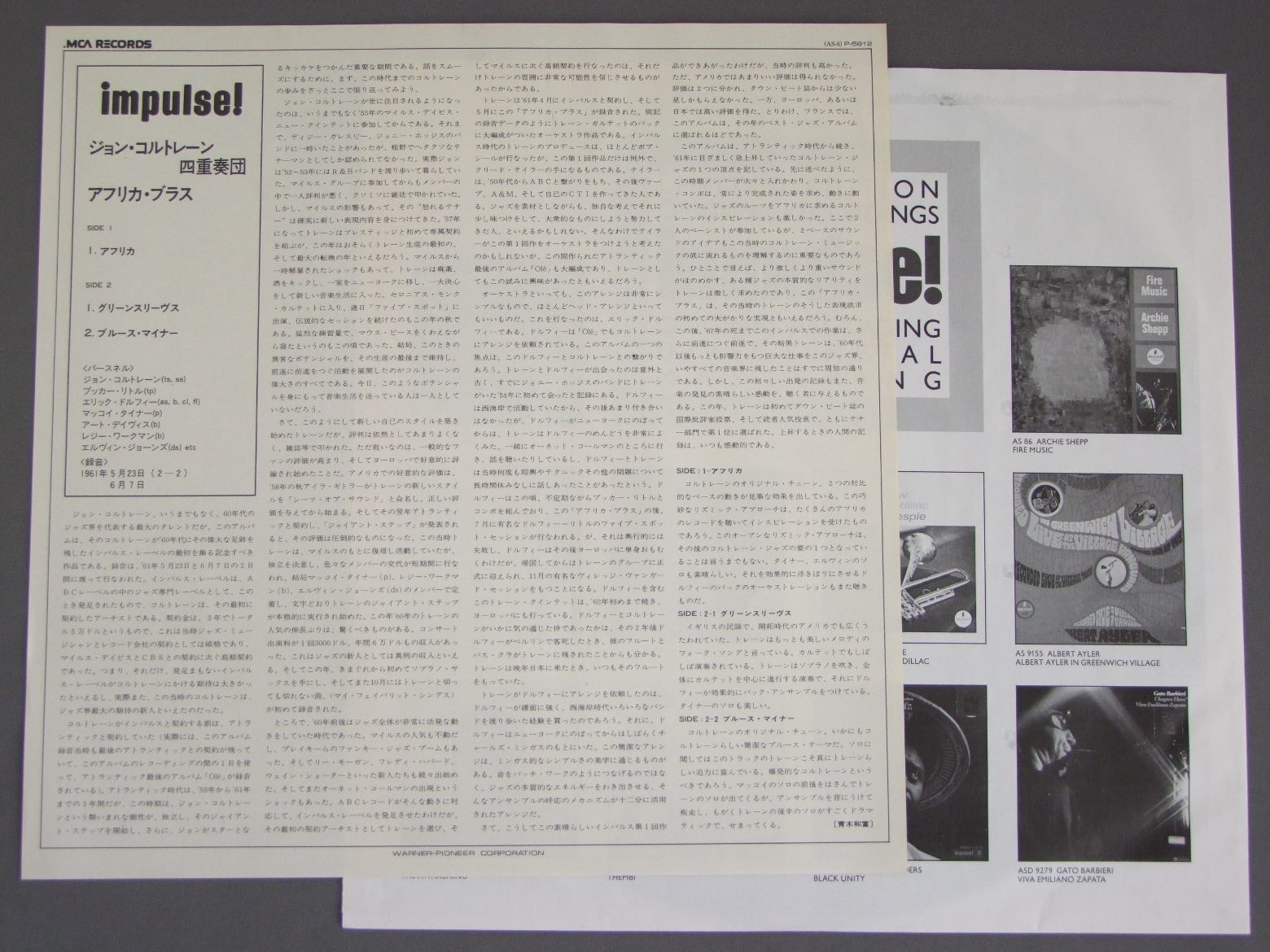 THE JOHN COLTRANE QUARTETジョン・コルトレーン四重奏団/AFRICAアフリカ P5912 製造国:独盤 / Media:LP外観:EX+盤の状態:EX+帯:EX- 価格(税込):¥1,320(売約済) 送料 7inch:定形外郵便 360円~LP:定形外郵便 660円~送料は、注文の最終画面で確認頂けます。 > > THE JOHN COLTRANE QUARTET/AFRICA 外観 (EX+)特記事項:特記なし。外観EX+の共通説明:中古としては美品、一見してきれいでダメージが軽微。シミ、ヨゴレ、スレ有っても僅か~少し。 盤の状態 (EX+)特記事項:極薄いスリキズ・スレ少し。一見してきれいな状態です。盤EX+の共通説明:盤面の極薄いスリキズ、スレ少し程度 音に出そうなものは無いように見える(極軽微なソフトティック音は除く)。 帯の状態 (EX-):上ヘリに短い切れ Tweet それぞれの画像をクリックすると、大きい写真が見られます こちらの商品もお勧めです 1,650円 BENNY GOODMAN / BENNY IN BRUSSELS 440円 EDDIE CONDON / SPIRIT OF CONDON 1,100円 GAROL LEIGH & JIM DAPOGNY / IF YOU DONT I KNOW WHO WILL 3,850円 CHARLIE PARKER / HISTORICAL MASTERPIECES 3LP BOX 1,210円 ANDRE PREVIN - ITZHAK PERLMAN etc / DIFFERENT KIND OF BLUES 990円 MILESTONE JAZZSTARS (MCCOY TYNER - SONNY ROLLINS - RON CARTER - AL FOSTER) / IN CONCERT 1978 770円 ALL STARS / EUROPEAN CONCERT 1,320円 CLIFF JACKSON / HOT PIANO