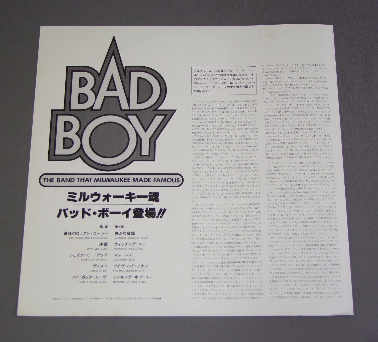 BAD BOY/BAND THAT MILWAUKEE MADE FAMOUSミルウォーキー魂 GP561 製造国:日本盤 / Media:LP外観:EX盤の状態:EX+ 価格(税込):¥770(売約済) 送料 7inch:定形外郵便 360円~LP:定形外郵便 660円~送料は、注文の最終画面で確認頂けます。 > > BAD BOY/BAND THAT MILWAUKEE MADE FAMOUS 外観 (EX)特記事項:特記なし。外観EXの共通説明:ダメージが限定的。中古品としては保存状態がよい方。シミ、ヨゴレ、スレ 少し~軽度。 盤の状態 (EX+)特記事項:極薄いスリキズ・スレ少しだけ。一見してきれいな状態です。盤EX+の共通説明:盤面の極薄いスリキズ、スレ少し程度 音に出そうなものは無いように見える(極軽微なソフトティック音は除く)。 その他:白見本盤 Tweet それぞれの画像をクリックすると、大きい写真が見られます こちらの商品もお勧めです 1,210円 5TH DIMENSIONフィフス・ディメンソン / THE BESTフィフス・ディメンソン 1,540円 FIREFALLファイアフォール / CLOUDS ACROSS THE SUNロッキーの夕陽 770円 STYXスティクス / CORNERSTONEコーナーストーン 1,210円 THREE SUNSスリー・サンズ / GOLDEN ALBUMゴールデン・アルバム 660円 DOOBIE BROTHERSドゥービー・ブラザーズ / ONE STEP CLOSERワン・ステップ・クローサー 880円 SANTANAサンタナ / SANTANAサンタナのすべて 1,320円 HASSLESハッスルズ / HASSLESハッスルズ 1,210円 SHA NA NAシャ・ナ・ナ / ROCK`N`ROLL FEVERロックン・ロール・フィーバー