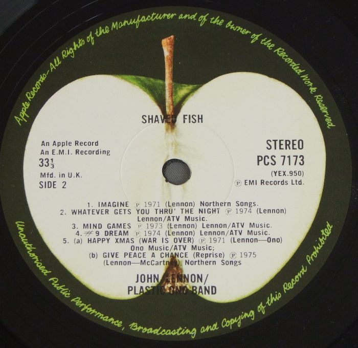 JOHN LENNON/SHAVED FISH PCS7173 製造国:英国盤 / Media:LPMatrix:1U | 1U外観:EX盤の状態:EX- 価格(税込):¥4,400(売約済) 送料 7inch:定形外郵便 360円~LP:定形外郵便 660円~送料は、注文の最終画面で確認頂けます。 > > JOHN LENNON/SHAVED FISH 外観 (EX)特記事項:両面共厚手のコーティング仕様。ジャケ表面は全体的にスレやスリキズ、コーティングのヨレシワ等は少ない感じ。オリジナルインナーはあまりヨレやよごれなどは無い感じ。底抜け有り。外観EXの共通説明:ダメージが限定的。中古品としては保存状態がよい方。シミ、ヨゴレ、スレ 少し~軽度。 盤の状態 (EX-)特記事項:薄いスリキズ軽度。A面に細かい表面スレ多少ある感じ。プチ出そうなところは殆どなく、軽微なものの様子です。所々聴いてみましたが、チリプチは軽度で音もしっかりなっています。盤EX-の共通説明:盤面のスリキズが多少有り。音に出そうなものは殆ど無いように見える~さほど気にならないぐらいの軽いプチ数カ所程度。 Tweet それぞれの画像をクリックすると、大きい写真が見られます こちらの商品もお勧めです 5,500円 JOHN LENNON / SHAVED FISH 4,950円 JOHN & YOKO - PLASTIC ONO BANDF / SOME TIME IN NEW YORK CITY 5,500円 GEORGE HARRISON / THIRTY THREE & 1/3 5,500円 GEORGE HARRISON / LIVING IN THE MATERIAL WORLD 5,500円 BEATLES / AT THE HOLLYWOOD BOWL