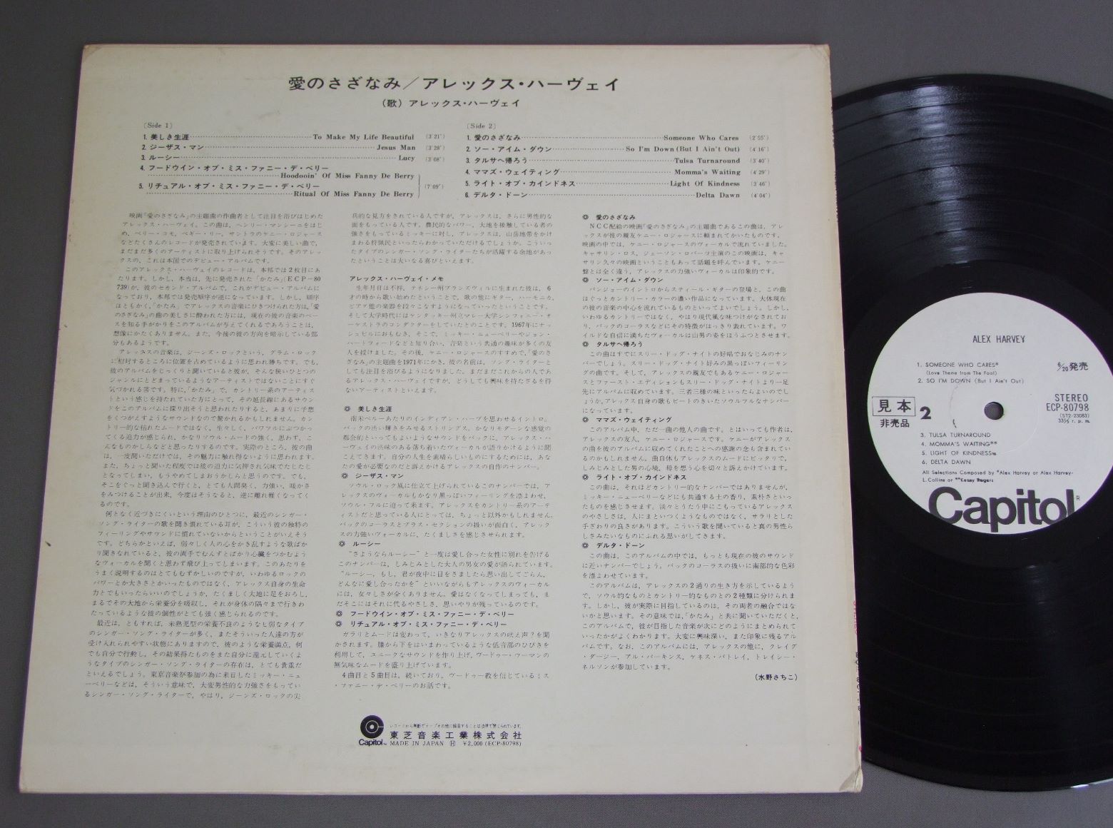 ALEX HARVEY/SOMEONE WHO CARES愛のさざなみ ECP80798 製造国:日本盤 / Media:LP外観:EX-盤の状態:EX+ 価格(税込):¥990(売約済) 送料 7inch:定形外郵便 360円~LP:定形外郵便 660円~送料は、注文の最終画面で確認頂けます。 > > ALEX HARVEY/SOMEONE WHO CARES 外観 (EX-)特記事項:スレよごれや日焼軽多少有り。外観EX-の共通説明:ダメージ軽度~多少。 中古品としては普通の状態。シミ、ヨゴレ、スレなど軽く~多少。 盤の状態 (EX+)特記事項:極薄いスリキズ・スレ少しだけ。一見してきれいな状態です。盤EX+の共通説明:盤面の極薄いスリキズ、スレ少し程度 音に出そうなものは無いように見える(極軽微なソフトティック音は除く)。 その他:白身本盤 Tweet それぞれの画像をクリックすると、大きい写真が見られます こちらの商品もお勧めです 1,210円 RICK WAKEMAN - THE LONDON SYMPHONY ORCHESTRAリック・ウェイクマン - ロンドン交響楽団 / JOURNY TO THE CENTER OF THE EARTH地底探検 770円 ASIAエイジア / 1st ALBUM詠時感(エイジア) 1,210円 EMERSON. LAKE & PALMERエマーソン・レイク & パーマー / PICTURES AT AN EXHIBITION展覧会の絵 990円 EMERSON LAKE & PALMERエマーソン・レイク & パーマー / WORKS VOL 1ELP四部作 770円 MIKE OLDFIELDマイク・オールドフィールド / KILLING FIELDSキリング・フィールド 660円 EMERSON LAKE & PALMERエマーソン・レイク&パーマー / PICTURES AT AN EXHIBITION展覧会の絵 770円 RICK WAKEMANリック・ウェイクマン / MYTHS AND LEGENDS OF KING ARTHUR AND THE KNIGHTS OF THE ROUND TABLEアーサー王と円卓の騎士たち 1,210円 RICK WAKEMANリック・ウェイクマン / JOURNEY TO THE CENTER OF THE EARTH地底探検 ライブ