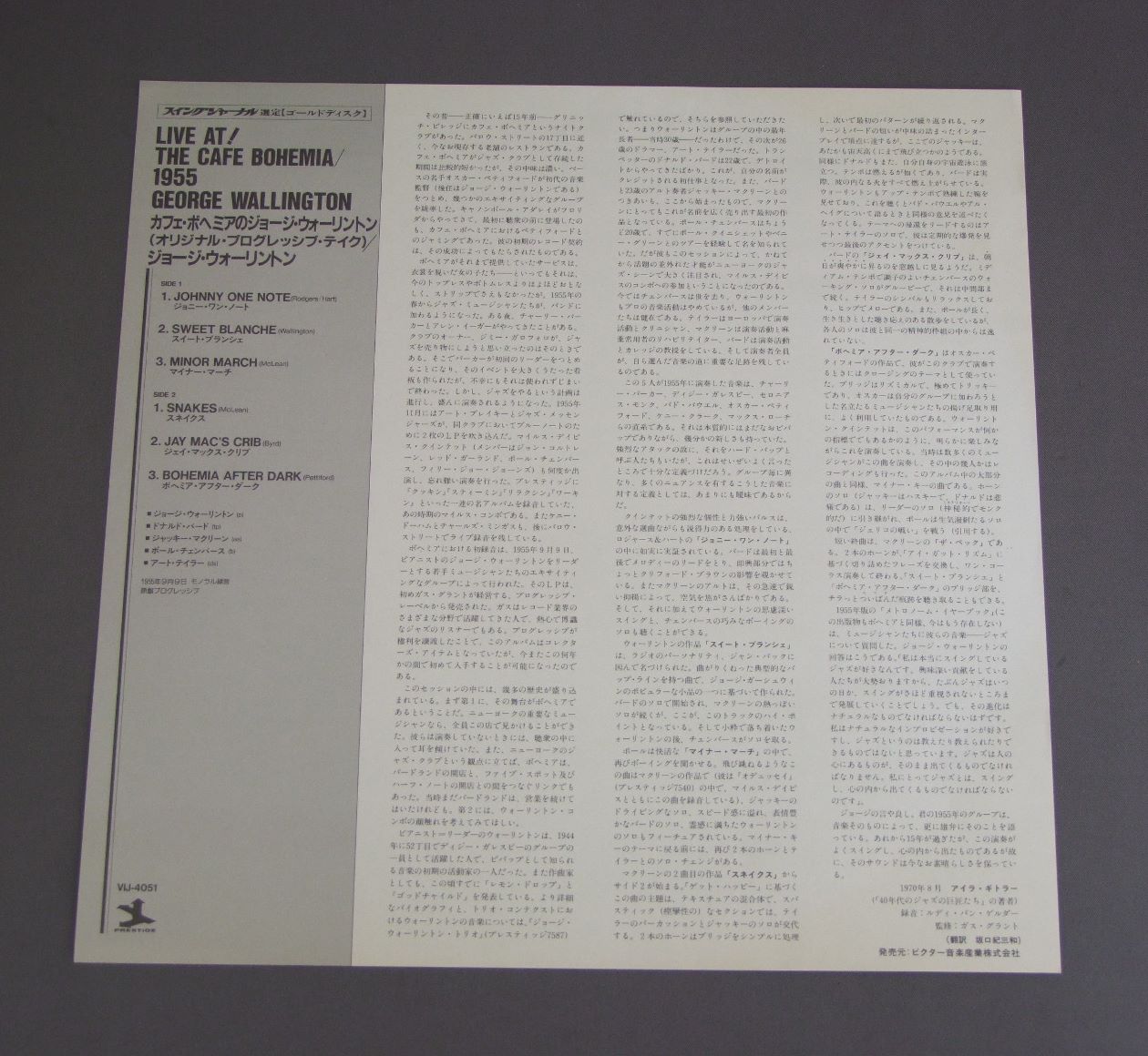 GEORGE WALLINGTON/LIVE ! AT CAFE BOHEMIA/1955 VIJ4051 製造国:日本盤 / Media:LP外観:EX盤の状態:EX+ 価格(税込):¥880(売約済) 送料 7inch:定形外郵便 360円~LP:定形外郵便 660円~送料は、注文の最終画面で確認頂けます。 > > GEORGE WALLINGTON/LIVE ! AT CAFE BOHEMIA/1955 外観 (EX)特記事項:特記なし。外観EXの共通説明:ダメージが限定的。中古品としては保存状態がよい方。シミ、ヨゴレ、スレ 少し~軽度。 盤の状態 (EX+)特記事項:極薄いスリキズ・スレ少しだけ。一見してきれいな状態です。盤EX+の共通説明:盤面の極薄いスリキズ、スレ少し程度 音に出そうなものは無いように見える(極軽微なソフトティック音は除く)。 その他:白見本盤 Tweet それぞれの画像をクリックすると、大きい写真が見られます こちらの商品もお勧めです 1,210円 JOHN MEHEGAN & EDDIE COSTAジョン・ミーガン&エディ・コスタ / PAIR OF PIANOSペア・オブ・ピアノ 770円 TEDDY WILSONテディ・ウイルソン / NOBLE ART OF TEDDY WILSONノーブル・アート・オブ・テディ・ウイルソン 990円 JAMES NEWTONジェームズ・ニュートン / DAYDREAMデイドリーム 770円 HERBIE MANNハービー・マン / HOLD ON. I`M COMIN`ホールド・オン 1,210円 BUCK CLAYTONバック・クレイトン・オールスターズ / HUCKLE-BUCK AND ROBBINS` NEST A BUCK CLAYTON JAM SESSIONバック・クレイトン・ジャム・セッション 1,320円 CHARIE BYRD - HERB ELLIS - BARNY KESSELチャーリー・バード - ハーブ・エリス - バーニー・ケッセル / GREAT GUITEARS 2グレート・ギター 2 990円 MODERN JAZZ QUARTETモダン・ジャズ・カルテット / TOGETHER AGAINトゥゲザー・アゲイン 990円 JIMMIE LUNCEFORDジミー・ランスフォード / LUNSEFORD SPECIALランスフォード・スペシャル