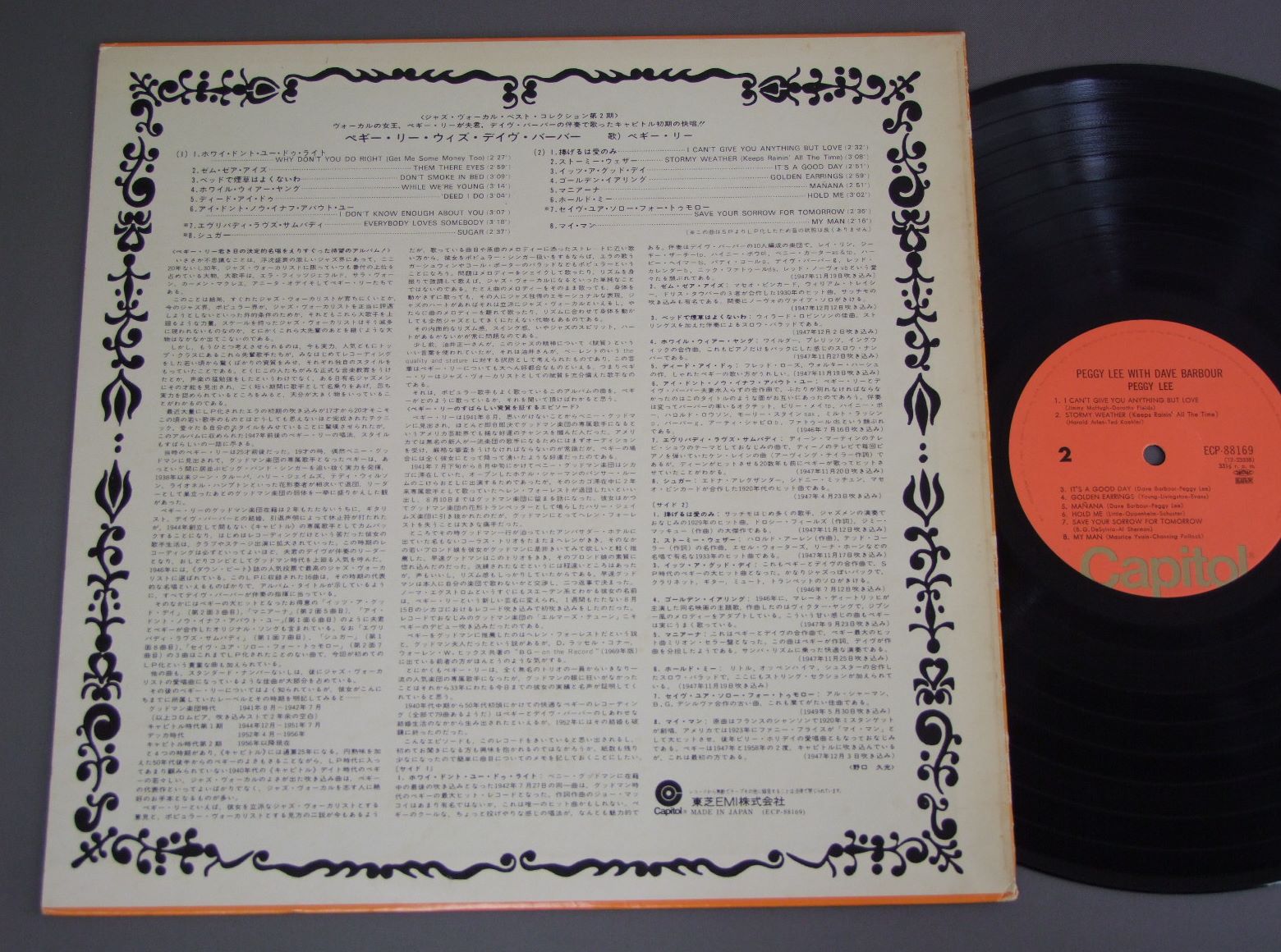 PEGGY LEE/WITH DAVE BARBOUR ECP88169 製造国:日本盤 / Media:LP外観:EX-盤の状態:EX+ 価格(税込):¥1,047(売約済) 送料 7inch:定形外郵便 360円~LP:定形外郵便 660円~送料は、注文の最終画面で確認頂けます。 > > PEGGY LEE/WITH DAVE BARBOUR 外観 (EX-)特記事項:背にスレやヨレ。裏ジャケに日焼感有り。外観EX-の共通説明:ダメージ軽度~多少。 中古品としては普通の状態。シミ、ヨゴレ、スレなど軽く~多少。 盤の状態 (EX+)特記事項:極薄いスリキズ・スレ少し。一見してきれいな状態です。盤EX+の共通説明:盤面の極薄いスリキズ、スレ少し程度 音に出そうなものは無いように見える(極軽微なソフトティック音は除く)。 その他:※画像では確認できない、上下ヘリ、背表紙、取り出し口を中心に状態表記しております。画像で確認出来る表裏ジャケ、レーベルの状態表記は省いている場合がありますので、そちらの状態は画像でご確認をお願い致します。携帯の方は一度PC等で写真をご確認の上ご入札下さいますよう、お願い申し上げます。 Tweet それぞれの画像をクリックすると、大きい写真が見られます こちらの商品もお勧めです 660円 LALO SCHIFRINラロ・シフリン / BLACK WIDOWブラック・ウィンドウ 880円 MODERN JAZZ QUARTETモダン・ジャズ・クワルテット / BASED ON BACH & THE BLUESバッハとブルースを基に 1,320円 MONTY ALEXANDER TRIOモンティ・アレキサンダー / MONTREUX ALEXANDERアット・モントルー 1,210円 JAMES MOODYジェームス・ムーディ / EMARCY JAMES MOODY - THE COMPLETE MOODY STORYコンプリート・ジェームス・ムーディ・オン・エマーシー 1,210円 SONNY STITT WITH QUINCY JONES ORCHETRAソニー・スティット・クインシージョーンズ オーケストラ / SAME TITLE 1,210円 DEREK SMITHディレク・スミス / BLUESETTEブルースェット 2,200円 CANNONBALL ADDERLEYキャノンボール・アダレイ / CANNONBALL IN STEREO 60s ISSUEキャノンボール・イン・ステレオ ぺラジャケ 1,210円 STAN KENTONスタン・ケントン / PORTRAITS ON STANDARDSポートレイツ・オン・スタンダーズ