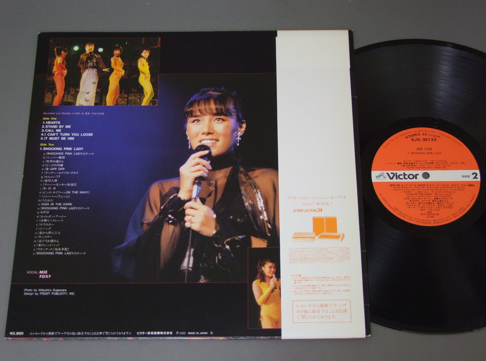 MIE/MIE LIVE SJX30133 製造国:日本盤 / Media:LP外観:EX+盤の状態:EX+帯:EX 価格(税込):¥1,320(売約済) 送料 7inch:定形外郵便 360円~LP:定形外郵便 660円~送料は、注文の最終画面で確認頂けます。 > > MIE/MIE LIVE 外観 (EX+)特記事項:特記なし。外観EX+の共通説明:中古としては美品、一見してきれいでダメージが軽微。シミ、ヨゴレ、スレ有っても僅か~少し。 盤の状態 (EX+)特記事項:極薄いスリキズ・スレ少し。一見してきれいな状態です。盤EX+の共通説明:盤面の極薄いスリキズ、スレ少し程度 音に出そうなものは無いように見える(極軽微なソフトティック音は除く)。 帯の状態 (EX):表の上ヘリ付近にステッカー跡 その他:PINK LADY Tweet それぞれの画像をクリックすると、大きい写真が見られます こちらの商品もお勧めです 770円 `SHOW` AIKAWA哀川翔 / ANTITHESE TRAIN ANTITHESE FLIGHTアンチテーゼ・トレイン アンチテーゼフライト 1,320円 TAKASHI SATO佐藤隆 / NUIT DU SAMEDI ET MATIN DU DIMANCHE土曜の夜と日曜の朝 880円 CHAGE & ASUKAチャゲ&飛鳥 / LIVE IN TOKYO 81LIVE IN 田園コロシアム THE 夏祭り `81 1,320円 BOROボロ / COMING SOON 770円 YOSHIYUKI OHSAWA大沢誉志幸 / IN・FIN・ITY 1,210円 MIYUKI NAKAJIMA中島みゆき / OKAERINASAIおかえりなさい 1,650円 YUMI ARAI etc荒井由実他 / YUMING SUMMER SONG BOOKユーミン・サマー・ソング・ブック 770円 KUMIKO YAMASHITA山下久美子 / BABY BABY