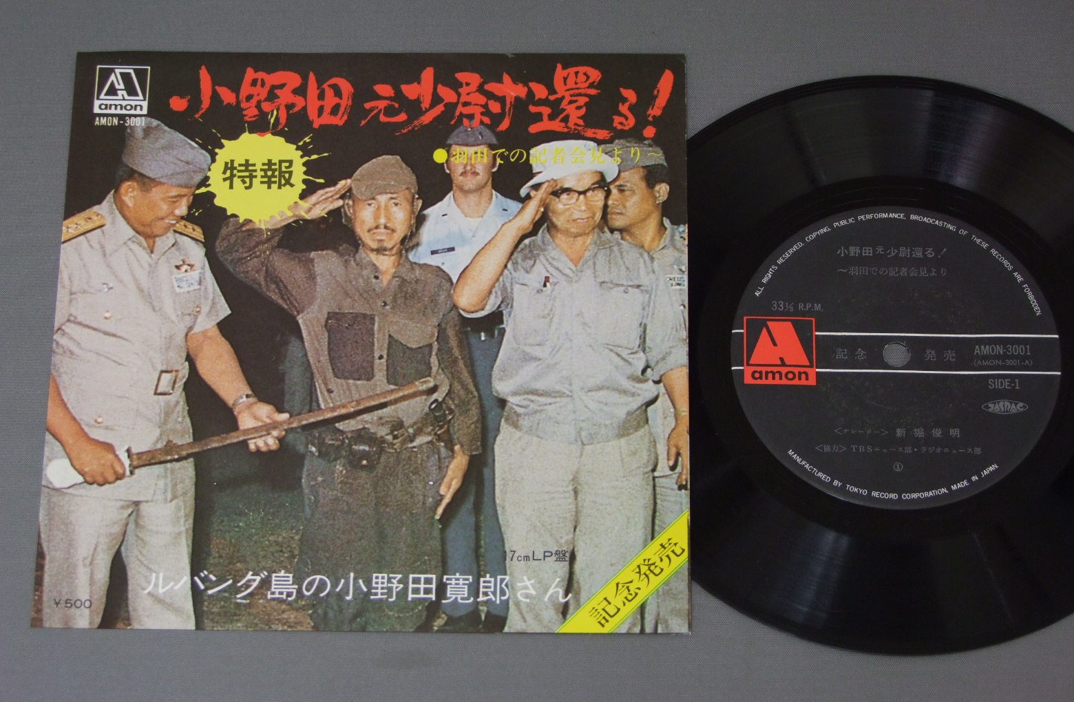 ルバング島の小野田寛郎さん/特報 小野田元少尉還る! 羽田での記者会見より AMON3001 製造国:日本盤 / Media:7inch外観:EX盤の状態:EX+ 価格(税込):¥838(売約済) 送料 7inch:定形外郵便 360円~LP:定形外郵便 660円~送料は、注文の最終画面で確認頂けます。 > > / 外観 (EX)特記事項:裏側に薄いシミ。外観EXの共通説明:ダメージが限定的。中古品としては保存状態がよい方。シミ、ヨゴレ、スレ 少し~軽度。 盤の状態 (EX+)特記事項:極薄いスリキズ・スレ少し。一見してきれいな状態です。盤EX+の共通説明:盤面の極薄いスリキズ、スレ少し程度 音に出そうなものは無いように見える(極軽微なソフトティック音は除く)。 その他:※画像では確認できない、上下ヘリ、背表紙、取り出し口を中心に状態表記しております。画像で確認出来る表裏ジャケ、レーベルの状態表記は省いている場合がありますので、そちらの状態は画像でご確認をお願い致します。携帯の方は一度PC等で写真をご確認の上ご入札下さいますよう、お願い申し上げます。 Tweet それぞれの画像をクリックすると、大きい写真が見られます こちらの商品もお勧めです 1,320円 SOUND EFFECTS効果音 / JET FIGHTER2世界のスーパー・ジェット・ファイター2 550円 QUADSONIC STEREO RECORD4チャンネル・ステレオの魅力 / OTTO 550円 東京寮歌会 / 思い出の寮歌集 1,210円 滅びゆく蒸気機関車 / 義経号からC62まで 770円 SOUND EFFECT効果音 / VARIOUS SOUND EFFECTS新効果音 効果アラカルト篇 1,870円 GEORGE RYLANDS / SHAKESPEARE-HENRY V 770円 DOCUMENTドキュメント / JAPAN `71にっぽん `71 880円 1971 AOYAMA GAKUIN UNIVERSITY青山学院大学第97期卒業委員会(1972年) / 出合い