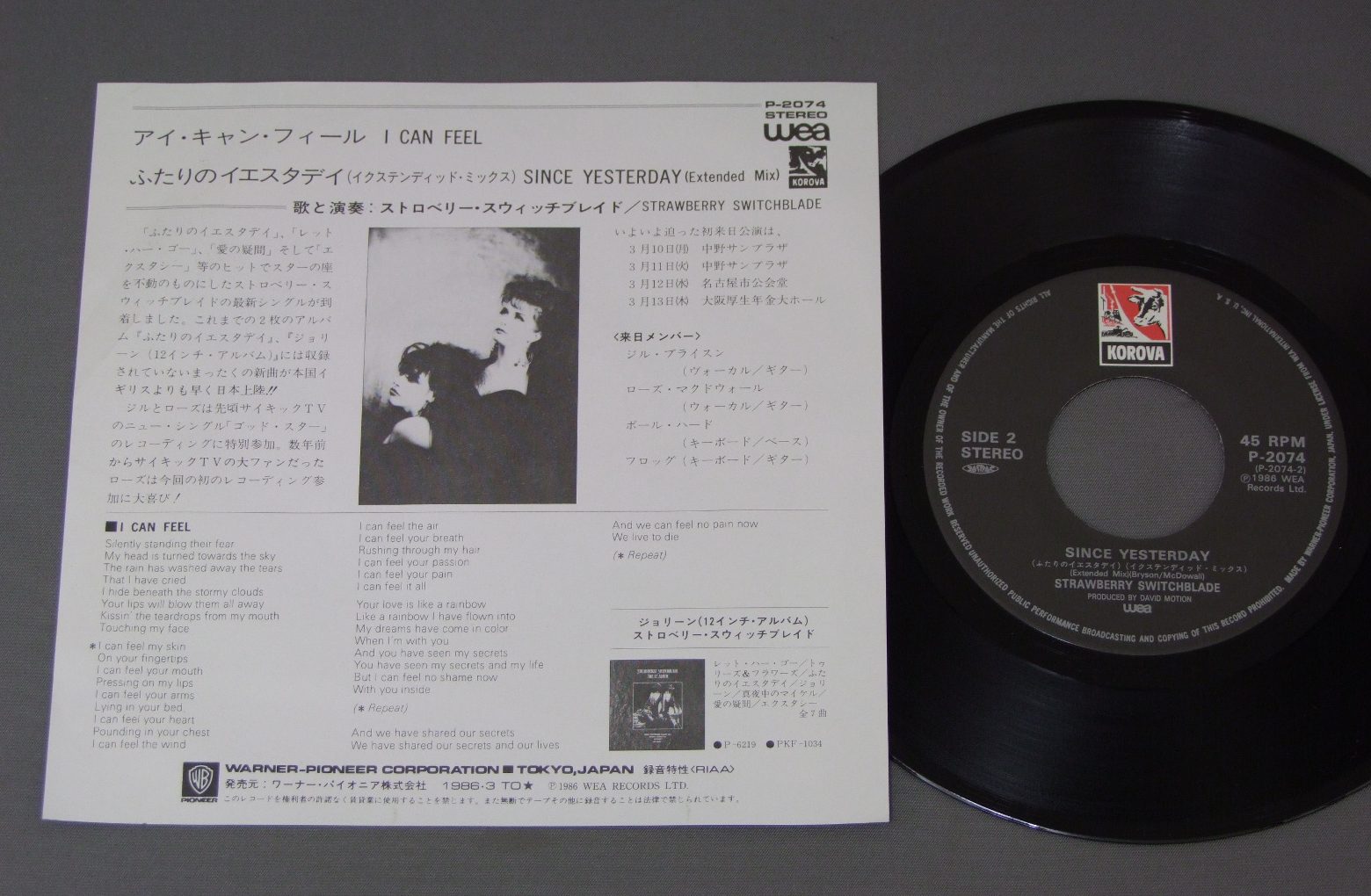 STRAWBERRY SWITCHBLADEストロベリー・スウィッチブレイド/I CAN FEELアイ・キャン・フィール P2074 製造国:日本盤 / Media:7inch外観:EX盤の状態:EX+ 価格(税込):¥770(売約済) 送料 7inch:定形外郵便 360円~LP:定形外郵便 660円~送料は、注文の最終画面で確認頂けます。 > > STRAWBERRY SWITCHBLADE/I CAN FEEL 外観 (EX)特記事項:特記なし。外観EXの共通説明:ダメージが限定的。中古品としては保存状態がよい方。シミ、ヨゴレ、スレ 少し~軽度。 盤の状態 (EX+)特記事項:極薄いスリキズ・スレ少し。一見してきれいな状態です。盤EX+の共通説明:盤面の極薄いスリキズ、スレ少し程度 音に出そうなものは無いように見える(極軽微なソフトティック音は除く)。 Tweet それぞれの画像をクリックすると、大きい写真が見られます こちらの商品もお勧めです 550円 TOUCH / TOUCH 440円 TAXXIタクシー / STATES OF EMERGENCY緊急発進 ! 770円 TAZMANIAN DEVILSタズマニアン・デヴィルズ / アメリカン・ドリームを探して 550円 CORBIN HANNER BANDコーバン・ハナー・バンド / SON OF AMERICAサン・オブ・アメリカ 550円 HUNG CHUNGワン・チャン / HUNG CHUNGダンス・ホール・デイズ 550円 BOOM CRASH OPERAブーム・クラッシュ・オペラ / GREAT WALLグレイト・ウォール 440円 HIPSWAYヒップスウェイ / HIPSWAYヒップスウェイ 1,320円 NENAネーナ / NENAロックバルーンは99