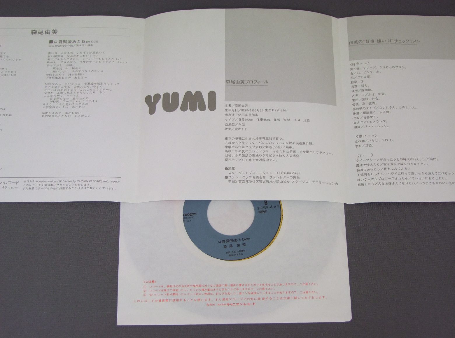 YUMI MORIO森尾由美/O NE GA Iお・ね・が・い 7A0279 製造国:日本盤 / Media:7inch外観:EX盤の状態:EX+ 価格(税込):¥330(売約済) 送料 7inch:定形外郵便 360円~LP:定形外郵便 660円~送料は、注文の最終画面で確認頂けます。 > > YUMI MORIO/O NE GA I 外観 (EX)特記事項:特記なし。外観EXの共通説明:ダメージが限定的。中古品としては保存状態がよい方。シミ、ヨゴレ、スレ 少し~軽度。 盤の状態 (EX+)特記事項:極薄いスリキズ・スレ少し。一見してきれいな状態です。盤EX+の共通説明:盤面の極薄いスリキズ、スレ少し程度 音に出そうなものは無いように見える(極軽微なソフトティック音は除く)。 Tweet それぞれの画像をクリックすると、大きい写真が見られます こちらの商品もお勧めです 990円 SONOKO KAWAI河合その子 / SIESTAシエスタ 770円 ONYANKO CLUBおニャン子クラブ / CIRCLEサークル 880円 MOMOE YAMAGUCHI山口百恵 / 16s THEME16才のテーマ 1,320円 YOSHIMI IWASAKI岩崎良美 / RING-A-DING (1st ALBUM)リング・ア・ディング (1st ALBUM) 880円 MOMOE YAMAGUCHI山口百恵 / BEST HITS山口百恵ヒット全曲集 660円 YOU HAYAMI早見優 / IMAGEイマージュ 660円 TOSHIRO OHMI近江俊郎 / BEST COLLECTION懐かしの歌声デラックス 湯の町エレジー 660円 YUKO ISHIKAWA石川優子 / SENTIMENTAL ROADセンチメンタル・ロード