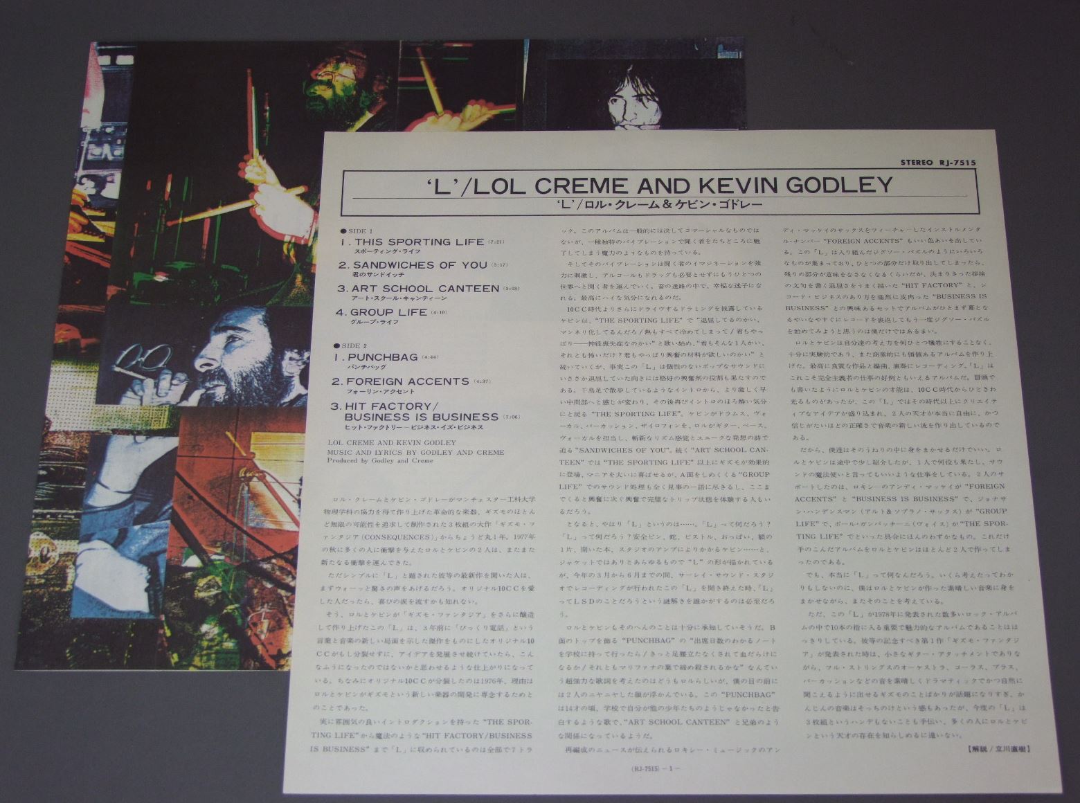 LOL CREME AND KEVIN GODLEYロル・クレーム&ケビン・ゴドレー/L RJ7515 製造国:日本盤 / Media:LP外観:EX-盤の状態:EX+帯:EX- 価格(税込):¥990(売約済) 送料 7inch:定形外郵便 360円~LP:定形外郵便 660円~送料は、注文の最終画面で確認頂けます。 > > LOL CREME AND KEVIN GODLEY/L 外観 (EX-)特記事項:ジャケ表面にシミ有り。外観EX-の共通説明:ダメージ軽度~多少。 中古品としては普通の状態。シミ、ヨゴレ、スレなど軽く~多少。 盤の状態 (EX+)特記事項:極薄いスリキズ・スレ少しだけ。一見してきれいな状態です。盤EX+の共通説明:盤面の極薄いスリキズ、スレ少し程度 音に出そうなものは無いように見える(極軽微なソフトティック音は除く)。 帯の状態 (EX-):裏側の折返し部分にヨレ。 その他:白見本盤 Tweet それぞれの画像をクリックすると、大きい写真が見られます こちらの商品もお勧めです 1,210円 PAT McGLYNN`S SCOTTIESパット・マッグリンとスコッティーズ / PAT McGLYNN`S SCOTTIESパット・デビュー ! あの娘はアイドル 990円 BAD COMPANYバッド・カンパニー / RUN WITH THE PACKバッド・カンパニー ?-ラン・ウィズ・ザ・パック 770円 ABBAアバ / ARRIVALアライバル 2,750円 SHOCKING BLUEショッキング・ブルー / LIVE IN JAPANLIVE IN JAPAN 1,210円 ABBAアバ / ARRIVALアライバル 1,650円 TEN YEARS AFTERテン・イヤーズ・アフター / CRICKLEWOOD GREENクリックルウッド・グリーン 770円 ABBAアバ / GREATEST HITS VOL.2グレイテスト・ヒッツVOL.2 770円 MARC BOLANマーク・ボラン / YOU SCARE ME TO DEATH霊魂の叫び