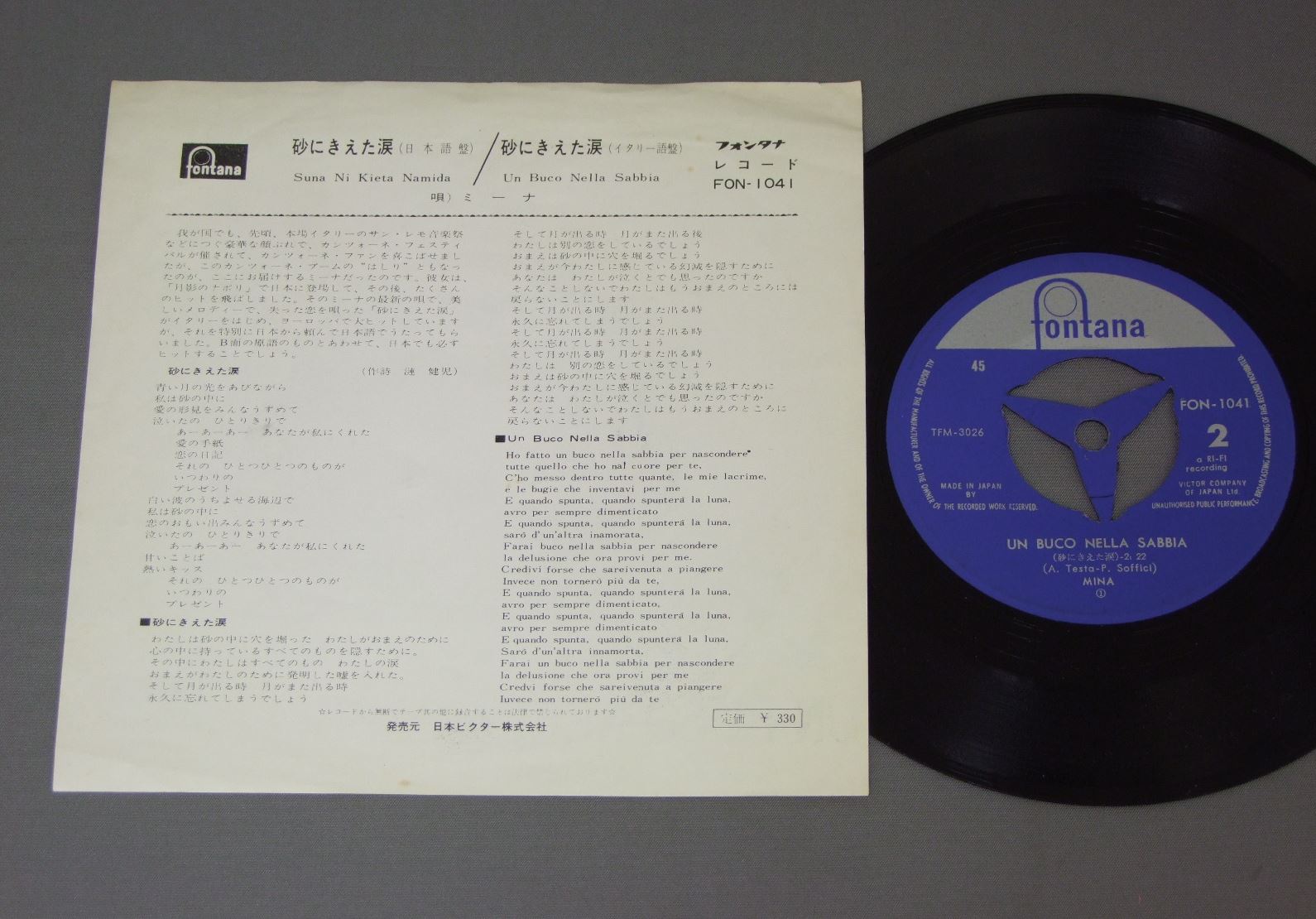 MINAミーナ/UN BUCO NELLA SABBIA砂に消えた涙 FON1041 製造国:日本盤 / Media:7inch外観:EX-盤の状態:EX- 価格(税込):¥524(売約済) 送料 7inch:定形外郵便 360円~LP:定形外郵便 660円~送料は、注文の最終画面で確認頂けます。 > > MINA/UN BUCO NELLA SABBIA 外観 (EX-)特記事項:特記なし。外観EX-の共通説明:ダメージ軽度~多少。 中古品としては普通の状態。シミ、ヨゴレ、スレなど軽く~多少。 盤の状態 (EX-)特記事項:薄いスリキズ・細かい表面スレ多少ある感じ。殆どが軽微なものの様子です。盤EX-の共通説明:盤面のスリキズが多少有り。音に出そうなものは殆ど無いように見える~さほど気にならないぐらいの軽いプチ数カ所程度。 Tweet それぞれの画像をクリックすると、大きい写真が見られます こちらの商品もお勧めです 990円 VENTURESベンチャーズ / ROOK`N`ROLL GRAFFITIロックン・ロール・グラフィティ 770円 RICK NELSONリック・ネルソン / ALBUM SEVEN BY RICKアルバム・セブン・リック 770円 ELVIS PRESLEYエルヴィス・プレスリー / THAT`S THE WAY IT IS映画 エルヴィス・オン・ステージ 1,210円 EVERLY BROTHERSエヴァリー・ブラザース / DATE WITH EVERY BROTHERSデイト・ウィズ・エヴァリー・ブラザーズ 880円 ELVISエルヴィス・プレスリー / THAT`S THE WAY IT ISこの胸のときめきを/映画「エルヴィス・オン・ステージ」主題歌集 440円 VENTURESベンチャーズ / POPS IN JAPANポップス・イン・ジャパン 1,320円 ELVIS PRESLEY / THAT`S THE WAY IT ISこの胸のときめきを 2,420円 CLIFF RICHARDクリフ・リチャード / CLIFF IN JAPAN