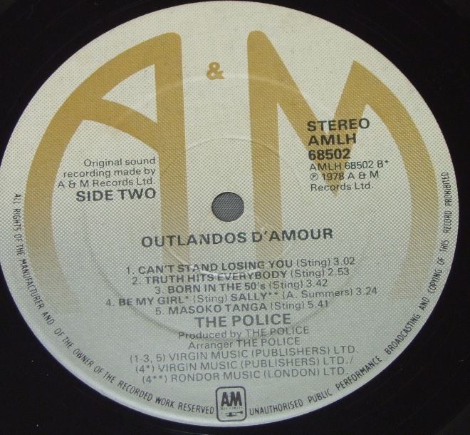 POLICE/OUTLANDOS D`AMOURマト1 AMLH68502 製造国:英国盤 / Media:LPMatrix:A1 | B1外観:EX盤の状態:EX 価格(税込):¥11,000(売約済) 送料 7inch:定形外郵便 360円~LP:定形外郵便 660円~送料は、注文の最終画面で確認頂けます。 レコード検索 > 全てのジャンル > POLICE/OUTLANDOS D`AMOUR 外観 (EX)特記事項:背上やレコード取り出し口下角でスレ多少有り。背や底ヘリでスレが少し。ジャケ表面は全体的にスレやスリキズ、よごれ等少ない状態です。表ジャケのタイトル下に僅かなスレはがれ小有り。外観EXの共通説明:ダメージが限定的。中古品としては保存状態がよい方。シミ、ヨゴレ、スレ 少し~軽度。 盤の状態 (EX)特記事項:薄いスリキズ・スレ少しある程度。音に出そうなものもなく一見してきれいな状態です。曲間など、静かなところを中心に聴いて見ましたが、チリプチ少なめで、音も綺麗に鳴っていました。盤EXの共通説明:盤面のスリキズが薄いものが少し~軽度 音に出そうなものは無いように見える(軽微なソフトティック音は除く)。 Tweet それぞれの画像をクリックすると、大きい写真が見られます こちらの商品もお勧めです 3,520円 STRANGLERS / AURAL SCULPTURE 4,400円 SHAM 69 / TELL US THE TRUTH 4,950円 DEVO / WE ARE DEVO 3,300円 MOOD SIX / MATTER OFF 3,080円 POLECATS WITH ROBIN SCOTT / CULT HEROES 4,400円 STRAPS / STRAPS 4,400円 ACCURSED / LAUGHING AT YOU 7,700円 ABRASIVE WHEELS / WHEN THE PUNKS GO MARCHING INサイン付