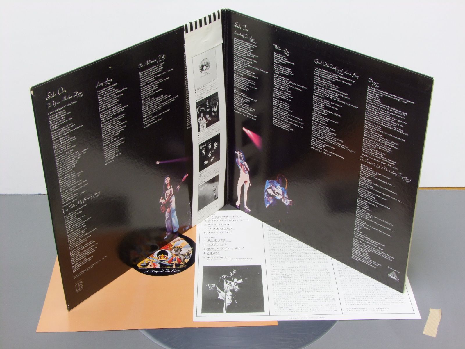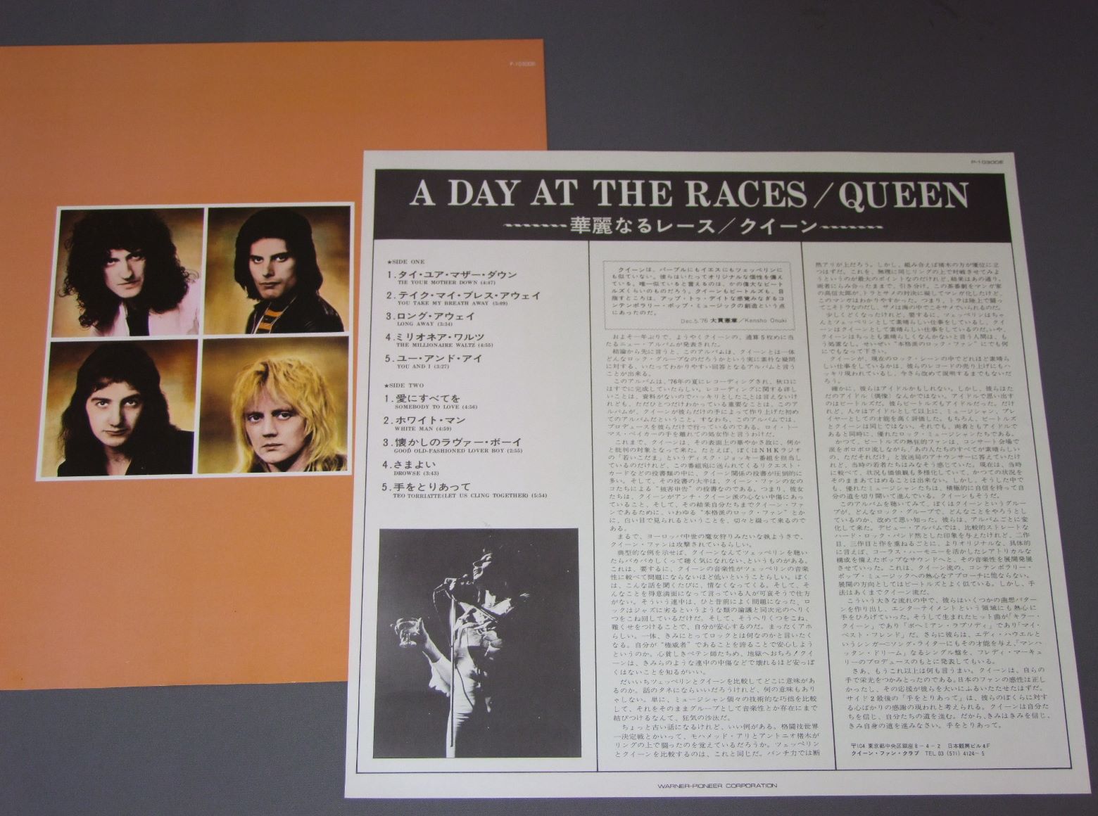 QUEENクィーン/A DAY AT THE RACES華麗なるレース P10300E 製造国:日本盤 / Media:LP外観:EX盤の状態:EX+帯:EX 価格(税込):¥4,291(売約済) 送料 7inch:定形外郵便 360円~LP:定形外郵便 660円~送料は、注文の最終画面で確認頂けます。 > > QUEEN/A DAY AT THE RACES 外観 (EX)特記事項:上ヘリにスレ多少有り。外観EXの共通説明:ダメージが限定的。中古品としては保存状態がよい方。シミ、ヨゴレ、スレ 少し~軽度。 盤の状態 (EX+)特記事項:極薄いスリキズ・スレ少し。一見してきれいな状態です。盤EX+の共通説明:盤面の極薄いスリキズ、スレ少し程度 音に出そうなものは無いように見える(極軽微なソフトティック音は除く)。 帯の状態 (EX):特記なし。 Tweet それぞれの画像をクリックすると、大きい写真が見られます こちらの商品もお勧めです