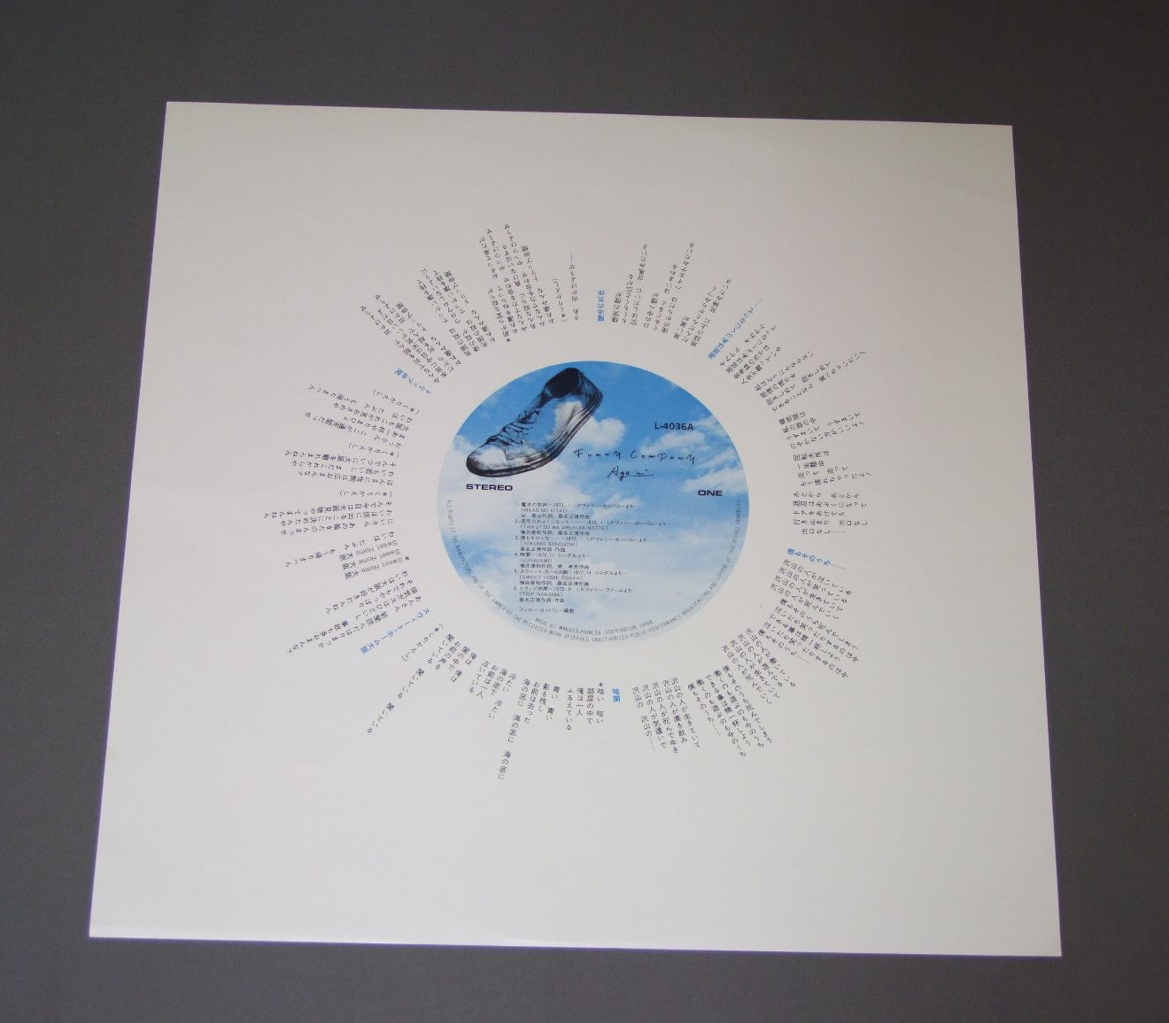FUNNY COMPANYファニー・カンパニー/FUNNY COMPANY AGAINファニー・カンパニー・アゲイン L4036A 製造国:日本盤 / Media:LP外観:EX+盤の状態:EX+ 価格(税込):¥1,320(売約済) 送料 7inch:定形外郵便 360円~LP:定形外郵便 660円~送料は、注文の最終画面で確認頂けます。 > > FUNNY COMPANY/FUNNY COMPANY AGAIN 外観 (EX+)特記事項:特記なし。外観EX+の共通説明:中古としては美品、一見してきれいでダメージが軽微。シミ、ヨゴレ、スレ有っても僅か~少し。 盤の状態 (EX+)特記事項:極薄いスリキズ・スレ少し。一見してきれいな状態です。盤EX+の共通説明:盤面の極薄いスリキズ、スレ少し程度 音に出そうなものは無いように見える(極軽微なソフトティック音は除く)。 Tweet それぞれの画像をクリックすると、大きい写真が見られます こちらの商品もお勧めです 1,210円 PANTA & HALパンタ&HAL / TKO NIGHT LIGHT 1,320円 COOLSクールス / COOLS LIVE VOLUME 2クールス・ライヴVOL 2 1,650円 KILLER MAYキラー・メイ / BYE BYE HIGH SCHOOLバイバイ・ハイスクール 990円 44 MAGNUM / STREET ROCK`N ROLLERストリートロックンローラー 880円 A.R.B / BAD NEWS 1,210円 BOW WOWバウワウ / CHARGEチャージ 1,320円 EARTH SHAKER / MIDNIGHT FLIGHT 770円 COOLSクールス / ROCK`N`ROLL ANGELSロックン・ロール・エンジェルス