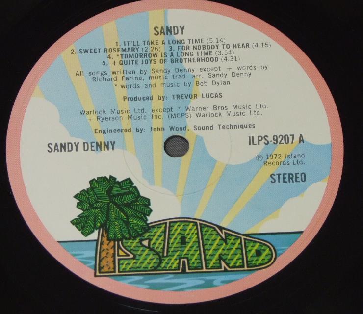 SANDY DENNY/SANDY ILPS9207 製造国:英国盤 / Media:LPMatrix:A-1U/1/G | B-1U/1/R外観:VG+盤の状態:EX- 価格(税込):¥7,700(売約済) 送料 7inch:定形外郵便 360円~LP:定形外郵便 660円~送料は、注文の最終画面で確認頂けます。 レコード検索 > 全てのジャンル > SANDY DENNY/SANDY 外観 (VG+)特記事項:上下ヘリスレ大。背スレも多少有り。ジャケ表面は裏ジャケに薄いレコードリングスレが少し出ていますが、全体的にはスレやスリキズ、ヨレシワは少ない感じ。よごれも少なめと思います。見開きもあまりスレやよごれ無くきれいな状態。外観VG+の共通説明:ダメージやや有り。シミ、ヨゴレ、スレなど多少~やや多め。 盤の状態 (EX-)特記事項:A面1曲目に音に出る小さめのキズ有りますが、最初6回ぐらいプチが出た後は、ソフトプチがたまにあるぐらいで気にならない程度でした。他細かい表面スレ軽く有る感じと、薄いスリキズ少し。音に出そうなものもなく綺麗な印象です。曲間などを中心に聴いてみましたが、A面最後の曲で若干のチリノイズ。他全体的にもチリノイズ少ないきれいな再生具合でした。おすすめの再生具合です。盤EX-の共通説明:盤面のスリキズが多少有り。音に出そうなものは殆ど無いように見える~さほど気にならないぐらいの軽いプチ数カ所程度。 Tweet それぞれの画像をクリックすると、大きい写真が見られます こちらの商品もお勧めです 4,950円 SANDY DENNY / RENDEZVOUS 5,060円 JONI MITCHELL / CHALK MARK IN A RAIN STORM 3,850円 NICO / THE END 4,400円 JONI MITCHELL / DOG EAT DOG 7,700円 SUSAN MAUGHAN / I WANNA BE BOBBY`S GIRL 4,950円 JONI MITCHELL / DOG EAT DOG