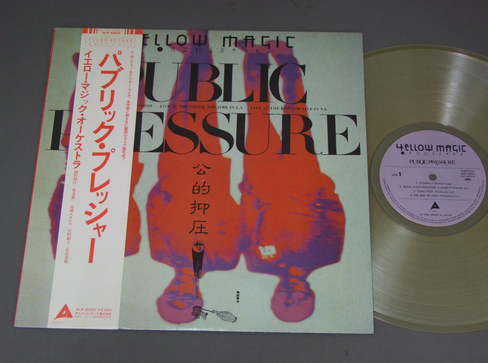 YELLOW MAGIC ORCHESTRAイエロー・マジック・オーケストラ/PUBLIC PRESSURE公的抑圧 パブリック・プレッシャー 透明盤 ALR6033 製造国:日本盤 / Media:LP外観:EX盤の状態:EX+帯:EX- 価格(税込):¥2,200(売約済) 送料 7inch:定形外郵便 360円~LP:定形外郵便 660円~送料は、注文の最終画面で確認頂けます。 > > YELLOW MAGIC ORCHESTRA/PUBLIC PRESSURE 外観 (EX)特記事項:特記なし。外観EXの共通説明:ダメージが限定的。中古品としては保存状態がよい方。シミ、ヨゴレ、スレ 少し~軽度。 盤の状態 (EX+)特記事項:極薄いスリキズ・スレ少し。一見してきれいな状態です。盤EX+の共通説明:盤面の極薄いスリキズ、スレ少し程度 音に出そうなものは無いように見える(極軽微なソフトティック音は除く)。 帯の状態 (EX-):薄いよごれ多少有り。 Tweet それぞれの画像をクリックすると、大きい写真が見られます こちらの商品もお勧めです 1,210円 MIYUKI NAKAJIMA中島みゆき / OKAERINASAIおかえりなさい 660円 TAKAKO SHIRAI白井貴子 / PASCAL 770円 ALL NIGHTERSオールナイターズ / 2nd ALBUMKIRAっとジェネレーション 1,650円 RC SUCCESIONRCサクセション / BEAT POPSBEAT POPS-RCサクセション 1,320円 OKAWARI SISTERSおかわりシスターズ / L.A.S.Tラ・ス・ト カレンダー付 990円 HATUMI SHIBATAしばたはつみ / BEST 16マイ・ラグジュアリー・ナイト しばたはつみ ベスト16 990円 YUKO TOMITAとみたゆう子 / CLASSICAL HEARTクラシカル・ハート 1,320円 ICHIRO FURUTACHI古舘伊知郎 / DAIKAGEKI大過激