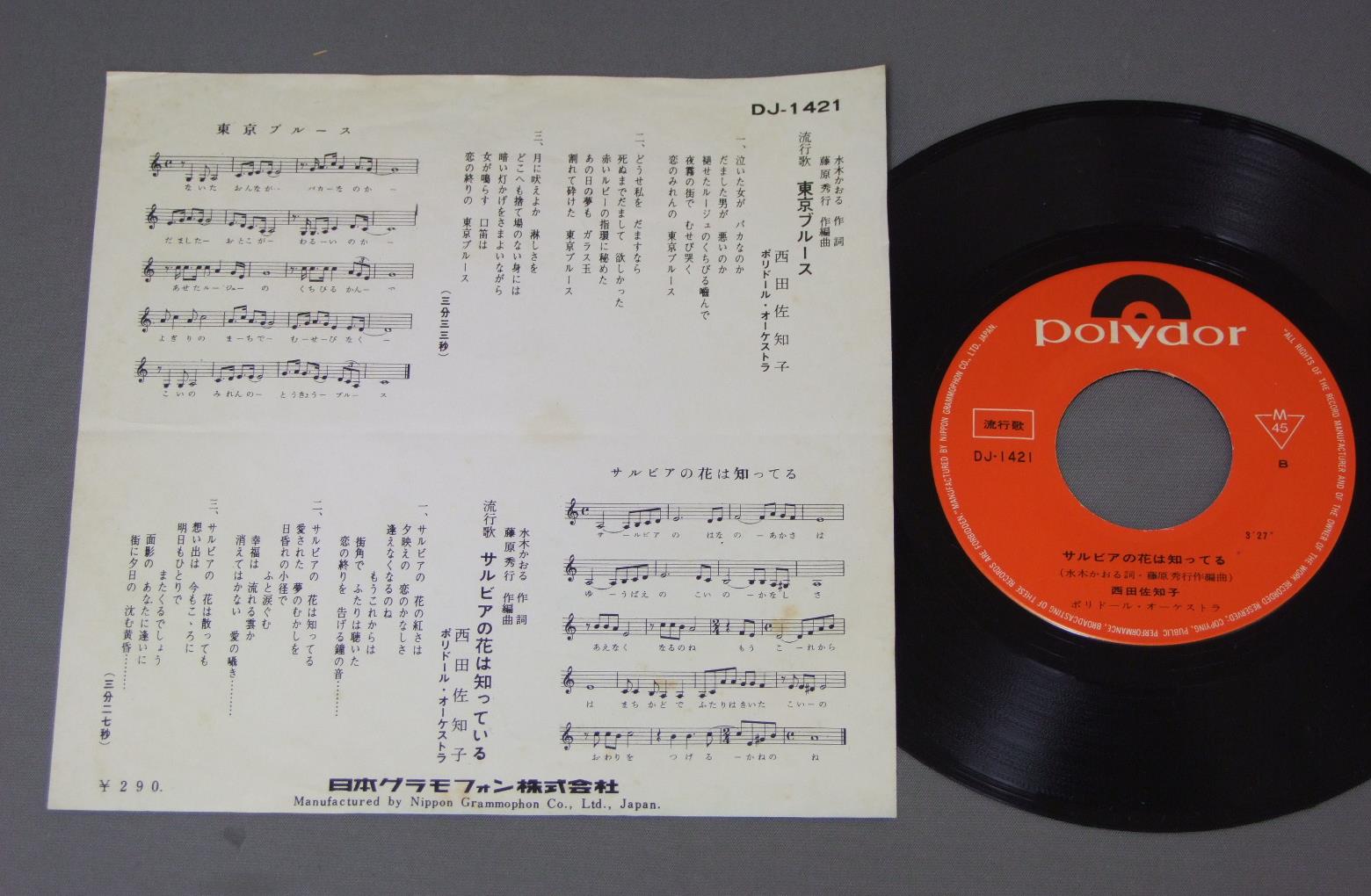 SAWAKO NISHIDA西田佐知子/ 東京ブルース DJ1421 製造国:日本盤 / Media:7inch外観:VG+盤の状態:EX+ 価格(税込):¥440(売約済) 送料 7inch:定形外郵便 360円~LP:定形外郵便 660円~送料は、注文の最終画面で確認頂けます。 > > SAWAKO NISHIDA/ 外観 (VG+)特記事項:横に折れ。ヨレも多少有り。裏側によごれ。外観VG+の共通説明:ダメージやや有り。シミ、ヨゴレ、スレなど多少~やや多め。 盤の状態 (EX+)特記事項:薄いスリキズ・スレ少し。一見してきれいな状態です。盤EX+の共通説明:盤面の極薄いスリキズ、スレ少し程度 音に出そうなものは無いように見える(極軽微なソフトティック音は除く)。 Tweet それぞれの画像をクリックすると、大きい写真が見られます こちらの商品もお勧めです 770円 MIEKO TAKAMINE高峰三枝子 / SONG ALBUM高峰三枝子 歌のアルバム 770円 MIDORI SASA笹みどり / BEST HITS下町育ち 笹みどりヒット集 1,210円 KEIICHIRO AKAGI赤木圭一郎 / EIEN-NO-TONY永遠のトニー 赤木圭一郎絶唱集 550円 HISAO ITO伊藤久男 / BEST ALBUM懐しの歌声 伊藤久男と共に 1,210円 高峰秀子-橋幸夫 他 / 続 日本流行歌史 880円 上原敏 / 憶い出の任侠・時代歌謡-ポリドール SP原盤 シリーズ 770円 YUJIRO ISHIHARA石原裕次郎 / YUJIRO ISHIHARA ORIGINAL BEST石原裕次郎オリジナルベスト 880円 TOSHIRO OKAMOTO岡本敦朗 / SHIROI HANA NO SAKUKORO白い花の咲く頃