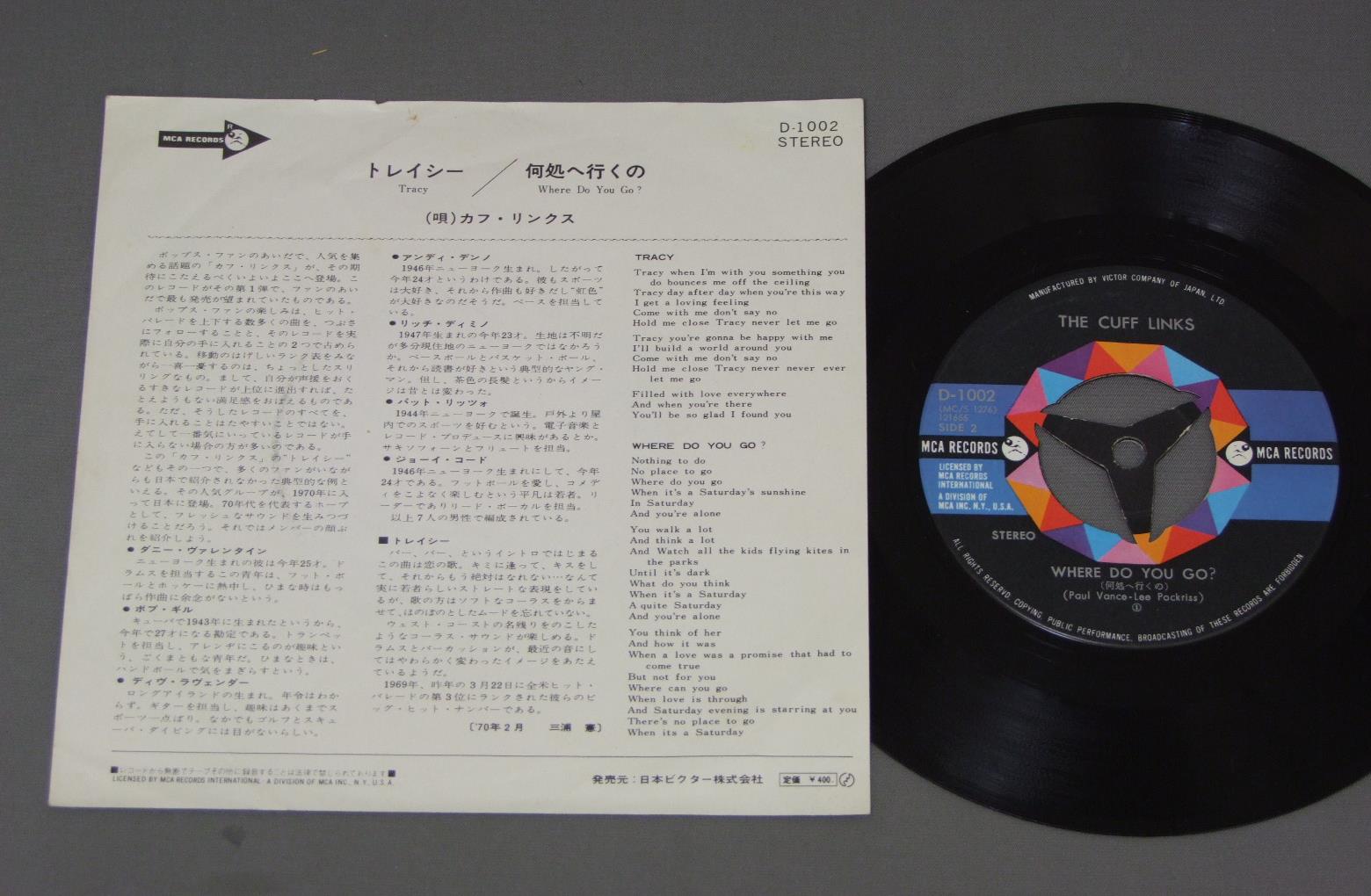 CUFF LINKSカフ・リンクス/TRACYトレイシー D1002 製造国:日本盤 / Media:7inch外観:EX-盤の状態:EX 価格(税込):¥440(売約済) 送料 7inch:定形外郵便 360円~LP:定形外郵便 660円~送料は、注文の最終画面で確認頂けます。 > > CUFF LINKS/TRACY 外観 (EX-)特記事項:上ヘリに小さな欠け。ヨレ多少有り。外観EX-の共通説明:ダメージ軽度~多少。 中古品としては普通の状態。シミ、ヨゴレ、スレなど軽く~多少。 盤の状態 (EX)特記事項:薄いスリキズ・スレ軽くある感じ。軽微なものの様子です。盤EXの共通説明:盤面のスリキズが薄いものが少し~軽度 音に出そうなものは無いように見える(軽微なソフトティック音は除く)。 Tweet それぞれの画像をクリックすると、大きい写真が見られます こちらの商品もお勧めです 1,320円 FIREFALLファイアフォール / LUNA SEA遥かなるルナ・シー 770円 REO SPEED WAGONREOスピード・ワゴン / REO SPEED WAGON LIVEREO ライブ 嵐の中へ 770円 J GEILS BANDJガイルズ・バンド / FREEZE FRAMEフリーズ・フレイム 770円 REO SPEEDWAGONREO スピードワゴン / HI INFIDELITY禁じられた夜 1,320円 STYXスティクス / KILROY WAS HEREキルロイ・ワズ・ヒア 1,210円 EAGLESイーグルス / LONG RUNザ・ロング・ラン 1,210円 SILVER CONDORシルバー・コンドル / SILVER CONDOR夜明けのテイク・オフ 1,320円 GARY LEWIS AND THE PLAYBOYSゲーリー・ルイスとプレイボーイズ / THIS DIAMOND RING恋のダイアモンド・リング