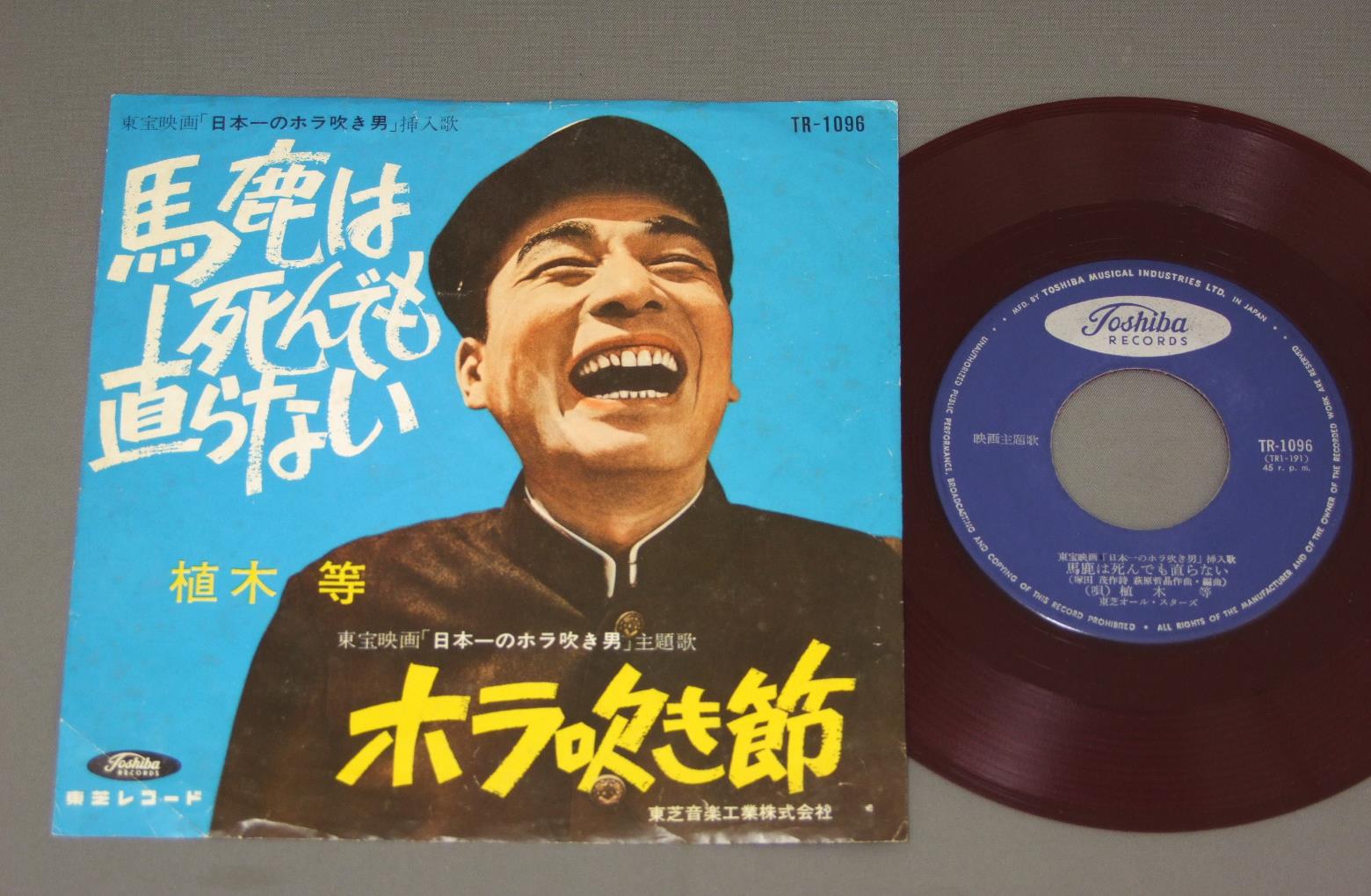植木等/ 映画「日本一のホラ吹き男」馬鹿は死んでも直ならない 赤盤 TR1096 製造国:日本盤 / Media:7inch外観:VG盤の状態:EX- 価格(税込):¥1,100(売約済) 送料 7inch:定形外郵便 360円~LP:定形外郵便 660円~送料は、注文の最終画面で確認頂けます。 > > / 外観 (VG)特記事項:ヨレやシミ多いです。左下隅にホッチキス穴。外観VGの共通説明:ダメージが見るからに多い。 盤の状態 (EX-)特記事項:薄いスリキズ・細かい表面スレ多少ある感じ。殆どが軽微なものの様子です。盤EX-の共通説明:盤面のスリキズが多少有り。音に出そうなものは殆ど無いように見える~さほど気にならないぐらいの軽いプチ数カ所程度。 その他:※画像では確認できない、上下ヘリ、背表紙、取り出し口を中心に状態表記しております。画像で確認出来る表裏ジャケ、レーベルの状態表記は省いている場合がありますので、そちらの状態は画像でご確認をお願い致します。携帯の方は一度PC等で写真をご確認の上ご入札下さいますよう、お願い申し上げます。 Tweet それぞれの画像をクリックすると、大きい写真が見られます こちらの商品もお勧めです 990円 YUKO TOMITAとみたゆう子 / COLOURSカラーズ (1st ALBUM) 1,320円 MISAKO HONJOH本城美沙子 / FORESIGHT 770円 EMU絵夢 / EMU 2絵夢 II 1,210円 MASAKO OHYA大屋政子 / LIVE CONCERT 770円 YUMING松任谷由実 / RINCARNATIONリ・インカーネイション 990円 MARI AMACHI天地真理 / YOU&I小さな恋-ひとりじゃないの (あなたと私) 990円 MASAMICHI SUGI杉真理 / STARGAZERスターゲイザー 1,320円 DARK DUCKSダーク・ダックス / FOLK ALBUM AUTOGRAPHEDフォーク思考(サイン付)