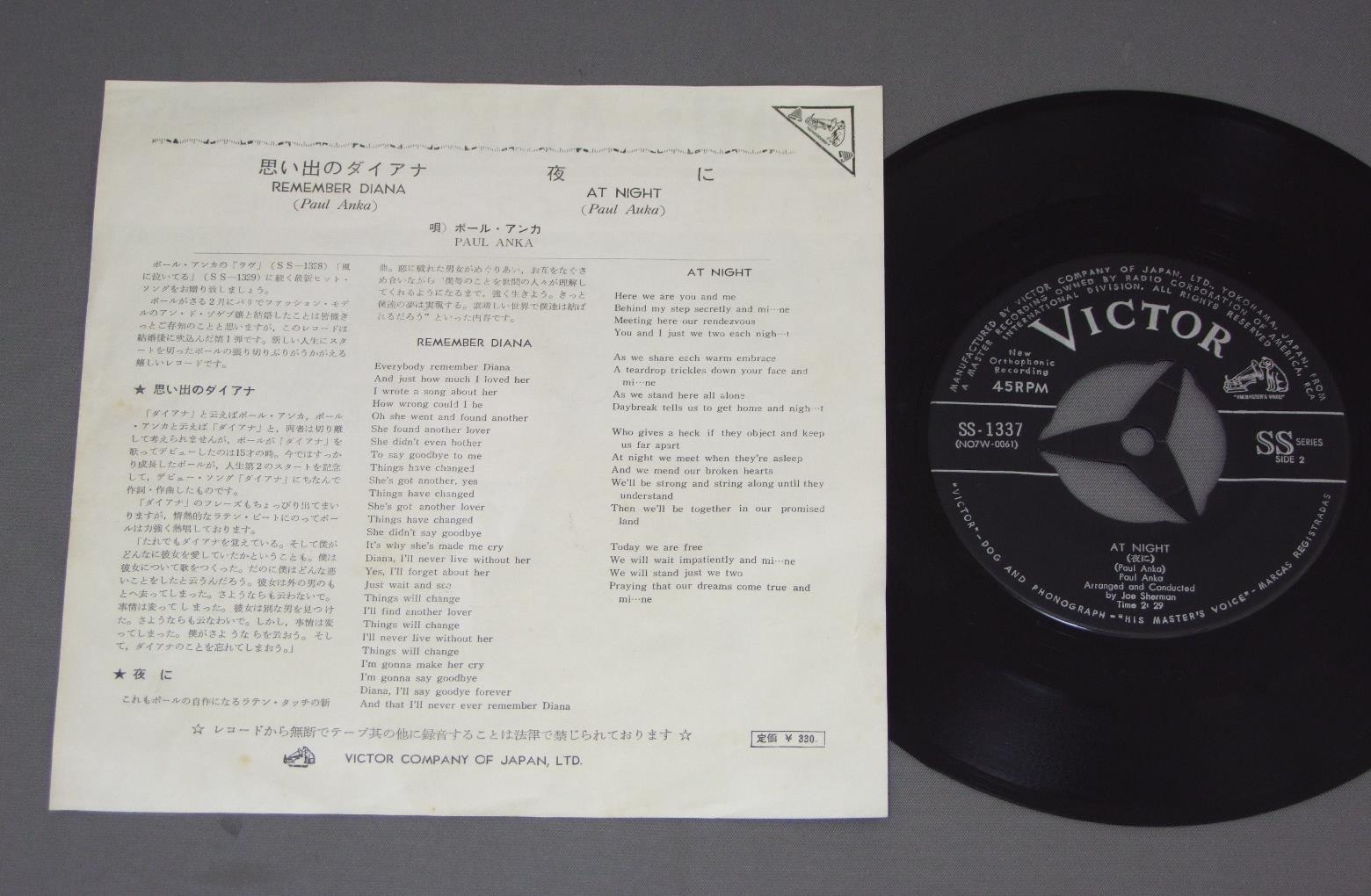 PAUL ANKAポール・アンカ/REMEMBER DIANA思い出のダイアナ SS1337 製造国:日本盤 / Media:7inch外観:VG+盤の状態:EX 価格(税込):¥1,100(売約済) 送料 7inch:定形外郵便 360円~LP:定形外郵便 660円~送料は、注文の最終画面で確認頂けます。 > > PAUL ANKA/REMEMBER DIANA 外観 (VG+)特記事項:表ジャケ左下の切り抜き貼り付け有り。外観VG+の共通説明:ダメージやや有り。シミ、ヨゴレ、スレなど多少~やや多め。 盤の状態 (EX)特記事項:薄いスリキズ・スレ軽くある感じ。軽微なものの様子です。盤EXの共通説明:盤面のスリキズが薄いものが少し~軽度 音に出そうなものは無いように見える(軽微なソフトティック音は除く)。 その他:※画像では確認できない、上下ヘリ、背表紙、取り出し口を中心に状態表記しております。画像で確認出来る表裏ジャケ、レーベルの状態表記は省いている場合がありますので、そちらの状態は画像でご確認をお願い致します。携帯の方は一度PC等で写真をご確認の上ご入札下さいますよう、お願い申し上げます。 Tweet それぞれの画像をクリックすると、大きい写真が見られます こちらの商品もお勧めです 1,210円 ELVIS PRESLEYエルヴィス・プレスリー / THAT`S THE WAY IT ISこの胸のときめきを 770円 WANDA JACKSONワンダ・ジャクスン / WANDA JACKSON COUNTRY !ワンダ・ジャクスン・カントリー 660円 PAUL ANKAポール・アンカ / BEST OF PAUL ANKAポール・アンカのすべて 770円 VARIOUS ARTISTS / YESTERDAY`S HITSイエスタデイズ・ヒッツ 1,210円 ELVIS PRESLEY / ELVIS IN PERSONプレスリー・イン・パーソン 770円 ELVIS PRESLEYエルヴィス・プレスリー / ELVIS VOL2 A LEGENDARY PERFORMER + BOOKLETエルヴィス・プレスリーの歴史 VOL2 2,420円 CLIFF RICHARDクリフ・リチャード / CLIFF IN JAPAN 880円 ELVISエルヴィス・プレスリー / THAT`S THE WAY IT ISこの胸のときめきを/映画「エルヴィス・オン・ステージ」主題歌集
