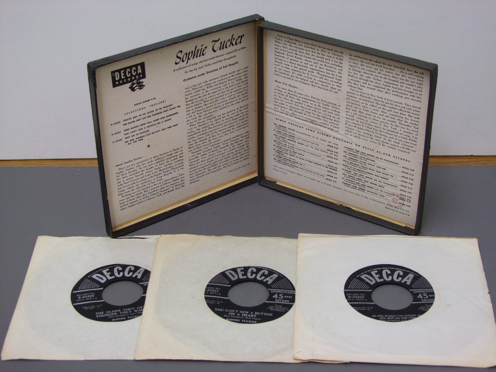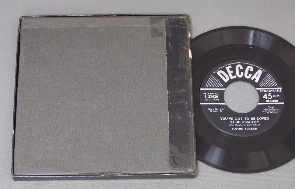 SOPHIE TUCKER/COLLECTION OF SONGS SHE HAS MADE FAMOUS DECCA9 56 製造国:米国盤 / Media:7inch外観:VG+盤の状態:EX 価格(税込):¥770(売約済) 送料 7inch:定形外郵便 360円~LP:定形外郵便 660円~送料は、注文の最終画面で確認頂けます。 > > SOPHIE TUCKER/COLLECTION OF SONGS SHE HAS MADE FAMOUS 外観 (VG+)特記事項:箱表は角スレや背を含むヘリスレに着色補修。箱表はスレ多め。一部着色補修有り。外観VG+の共通説明:ダメージやや有り。シミ、ヨゴレ、スレなど多少~やや多め。 盤の状態 (EX)特記事項:3枚とも薄いスリキズ・スレ軽くある感じ。プチ出そうなところは少しだけで、ほとんどが軽微なものの様子です。盤EXの共通説明:盤面のスリキズが薄いものが少し~軽度 音に出そうなものは無いように見える(軽微なソフトティック音は除く)。 その他:3枚組 Tweet それぞれの画像をクリックすると、大きい写真が見られます こちらの商品もお勧めです 550円 MEL TORME / `ROUND MIDNIGHT 440円 DICK HAYMES / DICK HAYMES SINGS 770円 JOHN GARY / CATCH A RISING STAR 1,210円 BING CROSBY / EASY TO REMEMBER 1931-36 990円 RICHARD PERRY / SWING 1,100円 TERESA BREWER / GOOD NEWS 990円 CLEO LAINE / BORN ON A FRIDAY 770円 SWINGLE SINGERS / GOING BAROQUE SWINGING HITS OF HANDEL