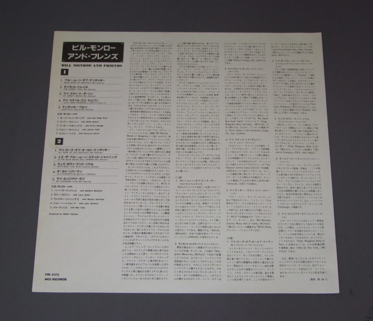 BILL MONROEビル・モンロー/BILL MONROE AND FRIENDSビル・モンロー・アンド・フレンズ VIM6315 製造国:日本盤 / Media:LP外観:EX盤の状態:EX+ 価格(税込):¥990(売約済) 送料 7inch:定形外郵便 360円~LP:定形外郵便 660円~送料は、注文の最終画面で確認頂けます。 > > BILL MONROE/BILL MONROE AND FRIENDS 外観 (EX)特記事項:特記なし。外観EXの共通説明:ダメージが限定的。中古品としては保存状態がよい方。シミ、ヨゴレ、スレ 少し~軽度。 盤の状態 (EX+)特記事項:極薄いスリキズ・スレ少し。一見してきれいな状態です。盤EX+の共通説明:盤面の極薄いスリキズ、スレ少し程度 音に出そうなものは無いように見える(極軽微なソフトティック音は除く)。 その他:※画像では確認できない、上下ヘリ、背表紙、取り出し口を中心に状態表記しております。画像で確認出来る表裏ジャケ、レーベルの状態表記は省いている場合がありますので、そちらの状態は画像でご確認をお願い致します。携帯の方は一度PC等で写真をご確認の上ご入札下さいますよう、お願い申し上げます。 Tweet それぞれの画像をクリックすると、大きい写真が見られます こちらの商品もお勧めです 770円 NITTY GRITTY DIRT BANDニッティー・グリッティー・ダート・バンド / UNCLE CHARLIE & HIS DOG TEDDYアンクル・チャーリーと愛犬テディー 990円 KITTY WELLSキティ・ウェルズ / DUST ON THE BIBLEダスト・オン・ザ・バイブル 770円 PETER PAUL&MARYピーター・ポール&マリー / LATE AGAINレイト・アゲイン 770円 BROTHERS FOURブラザース・フォア / HONEY WIND BLOWSビッグ・フォーク・ヒッツ 第3集 1,320円 JOAN BAEZジョーン・バエズ / GULF WINDSガルフ・ウィンズ 660円 JOAN BAEZジョーン・バエズ / JOAN自由の女神 990円 PETER PAUL & MARYピーター・ポール&マリー / IN CONCERT 770円 NITTY GRITTY DIRT BANDニッティー・グリッティー・ダート・バンド / STARS&STRIPES FOREVER星条旗よ永遠なれ!