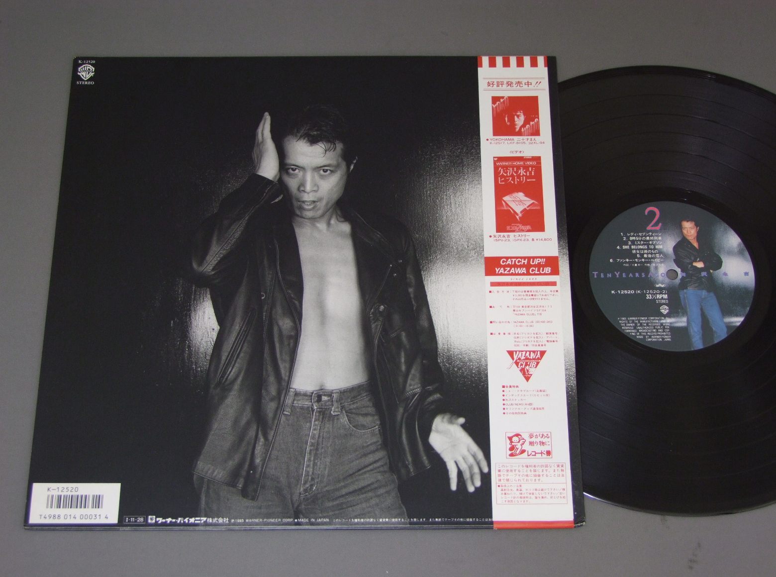 EIKICHI YAZAWA矢沢永吉/TEN YEARS AGOテン・イヤーズ・アゴー K12520 製造国:日本盤 / Media:LP外観:EX盤の状態:EX+帯:EX 価格(税込):¥1,100(売約済) 送料 7inch:定形外郵便 360円~LP:定形外郵便 660円~送料は、注文の最終画面で確認頂けます。 > > EIKICHI YAZAWA/TEN YEARS AGO 外観 (EX)特記事項:ブックレット付。外観EXの共通説明:ダメージが限定的。中古品としては保存状態がよい方。シミ、ヨゴレ、スレ 少し~軽度。 盤の状態 (EX+)特記事項:極薄いスリキズ・スレ少し。一見してきれいな状態です。盤EX+の共通説明:盤面の極薄いスリキズ、スレ少し程度 音に出そうなものは無いように見える(極軽微なソフトティック音は除く)。 帯の状態 (EX):特記なし。 その他:※画像では確認できない、上下ヘリ、背表紙、取り出し口を中心に状態表記しております。画像で確認出来る表裏ジャケ、レーベルの状態表記は省いている場合がありますので、そちらの状態は画像でご確認をお願い致します。携帯の方は一度PC等で写真をご確認の上ご入札下さいますよう、お願い申し上げます。 Tweet それぞれの画像をクリックすると、大きい写真が見られます こちらの商品もお勧めです 1,320円 OKAWARI SISTERSおかわりシスターズ / L.A.S.Tラ・ス・ト カレンダー付 1,210円 VARIOUS HANDICAPPED SINGERSたんぽぽの会 / INTERNATIONAL MUSIC FESTIVAL WATABOSHI小さな一歩 世界わたぼうし音楽祭 990円 TULIPチューリップ / LIVE ACT TULIP -VOL2-ライヴ !! アクト・チューリップ -VOL2- 770円 KENJI SAWADA沢田研二 / OMOIKKIRI KIZA NA JINSEI思いきり気障な人生 660円 BAKUFU SLUMPA爆風スランプ / YOIよい 550円 MASAHIRO KUWANA & TEAR DROPS桑名正博 & TEAR FROPS / COMMUNICATIONコミュニケーション 660円 MASAMICHI SUGI杉真理 / MISTONEミストーン 990円 HATUMI SHIBATAしばたはつみ / BEST 16マイ・ラグジュアリー・ナイト しばたはつみ ベスト16