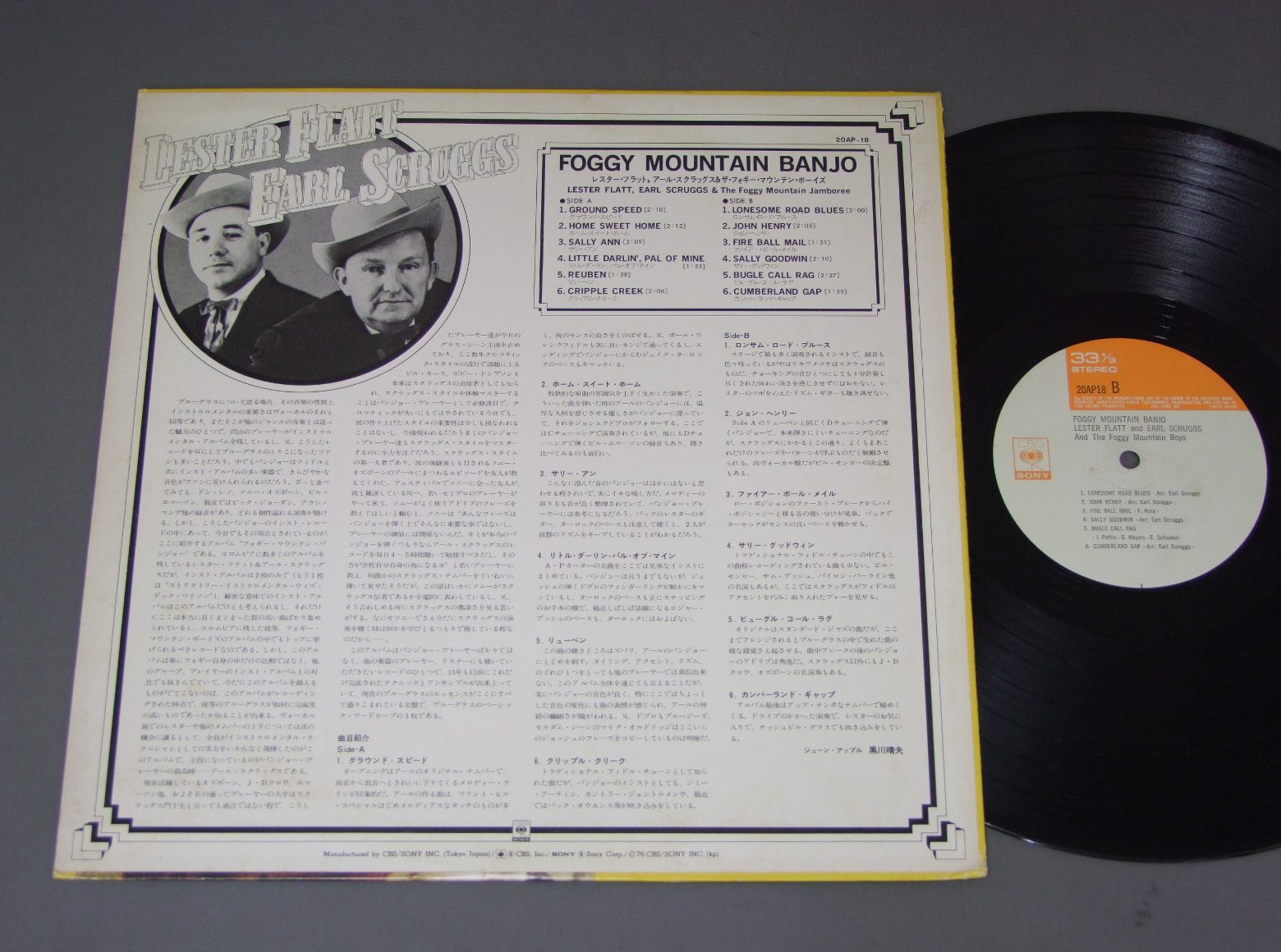 LESTER FLATT AND EARL SCRUGGS/FOGGY MOUNTAIN BANJO 20AP18 製造国:日本盤 / Media:LP外観:EX-盤の状態:VG+ 価格(税込):¥770(売約済) 送料 7inch:定形外郵便 360円~LP:定形外郵便 660円~送料は、注文の最終画面で確認頂けます。 > > LESTER FLATT AND EARL SCRUGGS/FOGGY MOUNTAIN BANJO 外観 (EX-)特記事項:裏ジャケにシミ多少有り。外観EX-の共通説明:ダメージ軽度~多少。 中古品としては普通の状態。シミ、ヨゴレ、スレなど軽く~多少。 盤の状態 (VG+)特記事項:薄いスリキズ・細かいスレ多少。全体的には軽微なものが中心です。少し聴いてみましたが、音自体はしっかりクリアーに鳴っているようでした。盤VG+の共通説明:盤面にスリキズが多少~やや有り、音に出そうなものも多少ある。 その他:※画像では確認できない、上下ヘリ、背表紙、取り出し口を中心に状態表記しております。画像で確認出来る表裏ジャケ、レーベルの状態表記は省いている場合がありますので、そちらの状態は画像でご確認をお願い致します。携帯の方は一度PC等で写真をご確認の上ご入札下さいますよう、お願い申し上げます。 Tweet それぞれの画像をクリックすると、大きい写真が見られます こちらの商品もお勧めです 770円 BROTHERS FOURブラザース・フォア / HONEY WIND BLOWSビッグ・フォーク・ヒッツ 第3集 770円 NITTY GRITTY DIRT BANDニッティー・グリッティー・ダート・バンド / UNCLE CHARLIE & HIS DOG TEDDYアンクル・チャーリーと愛犬テディー 770円 PETER PAUL&MARYピーター・ポール&マリー / LATE AGAINレイト・アゲイン 660円 JOAN BAEZジョーン・バエズ / JOAN自由の女神 770円 NITTY GRITTY DIRT BANDニッティー・グリッティー・ダート・バンド / STARS&STRIPES FOREVER星条旗よ永遠なれ! 1,320円 JOAN BAEZジョーン・バエズ / GULF WINDSガルフ・ウィンズ 990円 KITTY WELLSキティ・ウェルズ / DUST ON THE BIBLEダスト・オン・ザ・バイブル 990円 BANJO BARONSバンジョー・バロンズ / IT`S A FOLK FOLK FOLK FOLK WORLDバンジョー. フォーク・ソングの世界 ペラジャケ