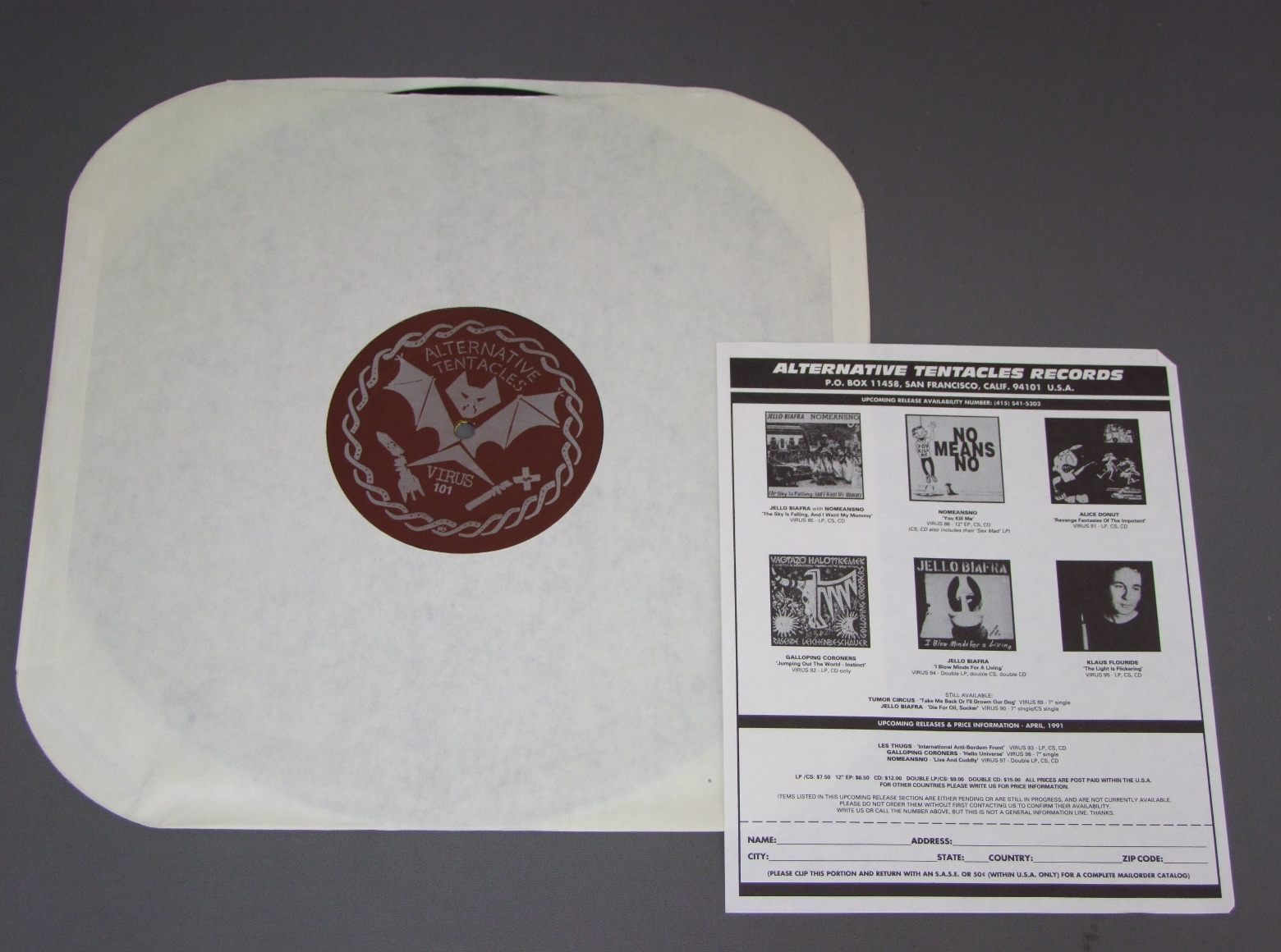 ALICE DONUT/ASS TRILOGY VIRUS101 製造国:輸入盤 / Media:LP外観:EX盤の状態:EX 価格(税込):¥1,100(売約済) 送料 7inch:定形外郵便 360円~LP:定形外郵便 660円~送料は、注文の最終画面で確認頂けます。 > > ALICE DONUT/ASS TRILOGY 外観 (EX)特記事項:特記なし。外観EXの共通説明:ダメージが限定的。中古品としては保存状態がよい方。シミ、ヨゴレ、スレ 少し~軽度。 盤の状態 (EX)特記事項:薄いスリキズ・スレ軽くある感じ。殆どが軽微なものの様子です。盤EXの共通説明:盤面のスリキズが薄いものが少し~軽度 音に出そうなものは無いように見える(軽微なソフトティック音は除く)。 その他:※画像では確認できない、上下ヘリ、背表紙、取り出し口を中心に状態表記しております。画像で確認出来る表裏ジャケ、レーベルの状態表記は省いている場合がありますので、そちらの状態は画像でご確認をお願い致します。携帯の方は一度PC等で写真をご確認の上ご入札下さいますよう、お願い申し上げます。 Tweet それぞれの画像をクリックすると、大きい写真が見られます こちらの商品もお勧めです 990円 AND ALL BECAUSE THE LADY LOVES / ANYTHING BUT A SOFT CENTRE 660円 THOMPSON TWINS / HERE`S TO FUTURE DAYS 1,650円 LLOYD COLE AND THE COMMOTION / EASY PIECES 550円 FIRE FALL / UNDERTOW 1,100円 COOLIES / COOLIES PRESENTS DOUG 660円 BRONSKI BEAT / HUNDREDS & THOUSANDS 1,540円 JAMES TAYLOR QUINTET / ABSOLUTE JAMES TAYLOR QUINTET LIVE 990円 ROUGH TRADE ARTISTS / HERE`S EGG ON OUR FACE !( 8 TRACKS EASTER PROMO )