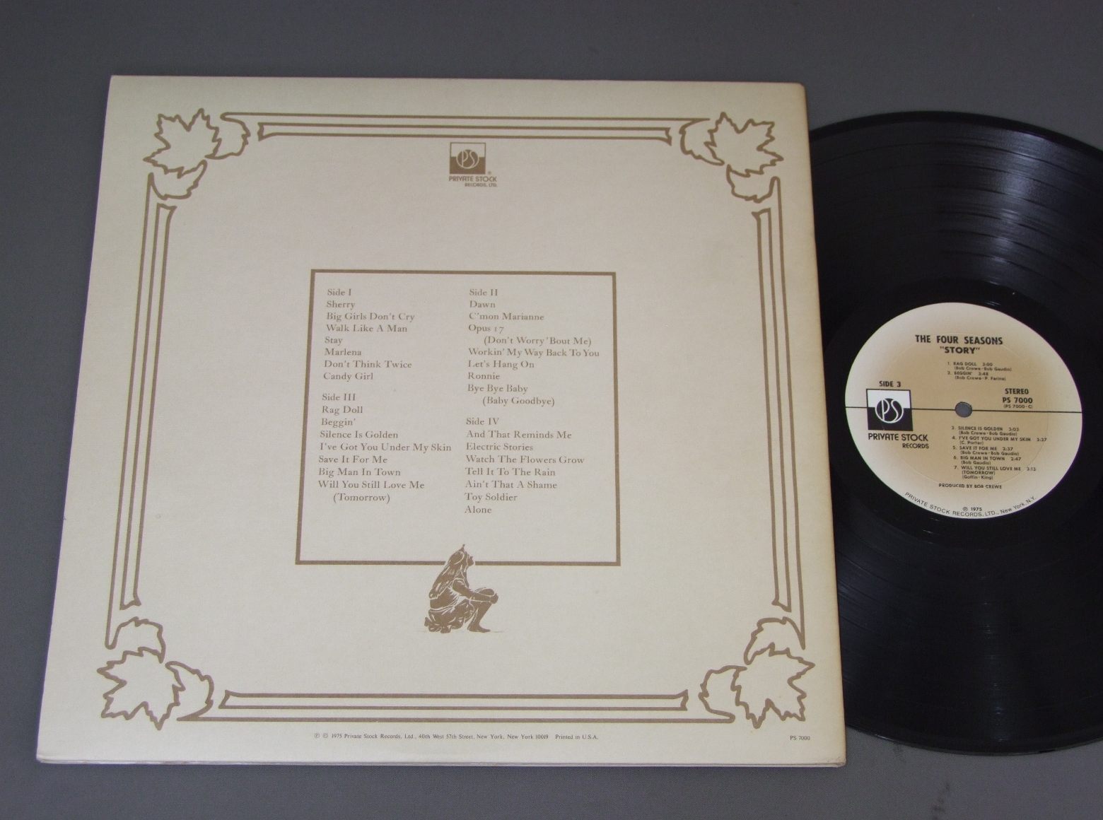 FOUR SEASONS/STORY PS7000 製造国:米国盤 / Media:LP外観:EX盤の状態:EX 価格(税込):¥1,100(売約済) 送料 7inch:定形外郵便 360円~LP:定形外郵便 660円~送料は、注文の最終画面で確認頂けます。 > > FOUR SEASONS/STORY 外観 (EX)特記事項:背や背側で多少日焼け感有り。外観EXの共通説明:ダメージが限定的。中古品としては保存状態がよい方。シミ、ヨゴレ、スレ 少し~軽度。 盤の状態 (EX)特記事項:薄いスリキズ・スレ軽くある感じ。一見してきれいな印象です。盤EXの共通説明:盤面のスリキズが薄いものが少し~軽度 音に出そうなものは無いように見える(軽微なソフトティック音は除く)。 その他:2枚組※画像では確認できない、上下ヘリ、背表紙、取り出し口を中心に状態表記しております。画像で確認出来る表裏ジャケ、レーベルの状態表記は省いている場合がありますので、そちらの状態は画像でご確認をお願い致します。携帯の方は一度PC等で写真をご確認の上ご入札下さいますよう、お願い申し上げます。 Tweet それぞれの画像をクリックすると、大きい写真が見られます こちらの商品もお勧めです 3,300円 ELVIS PLESLEY / ELVIS FOR PRESIDENT UNOFFICIAL RELEASE 990円 FRANKIE AVALON / YOU`RE MY LIFE 1,320円 RAY CHARLES / FRIENDSHIP