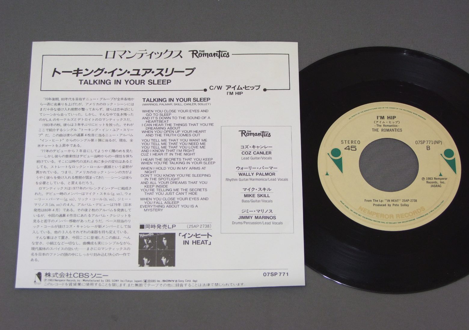 ROMANTICSロマンティックス/TALKING IN YOUR SLEEPトーキング・イン・ユア・スリープ 07SP771 製造国:日本盤 / Media:7inch外観:EX盤の状態:EX+ 価格(税込):¥770(売約済) 送料 7inch:定形外郵便 360円~LP:定形外郵便 660円~送料は、注文の最終画面で確認頂けます。 > > ROMANTICS/TALKING IN YOUR SLEEP 外観 (EX)特記事項:特記なし。外観EXの共通説明:ダメージが限定的。中古品としては保存状態がよい方。シミ、ヨゴレ、スレ 少し~軽度。 盤の状態 (EX+)特記事項:極薄いスリキズ・スレ少し。一見してきれいな状態です。盤EX+の共通説明:盤面の極薄いスリキズ、スレ少し程度 音に出そうなものは無いように見える(極軽微なソフトティック音は除く)。 Tweet それぞれの画像をクリックすると、大きい写真が見られます こちらの商品もお勧めです 1,320円 NENAネーナ / NENAロックバルーンは99 550円 CORBIN HANNER BANDコーバン・ハナー・バンド / SON OF AMERICAサン・オブ・アメリカ 550円 TOUCH / TOUCH 770円 CULTUTE CLUB / HOUSE ON FIRE 1,320円 CLASSIX NOUVEAUXクラシックス・ヌヴォー / NIGHT PEOPLE夜行人間 1,320円 QUARTERFLASHクウォーターフラッシュ / QUARTERFLASHミッドナイト・フラッシュ 660円 CULTURE CLUBカルチャー・クラブ / KISSING TO BE CLEVER 550円 BOOM CRASH OPERAブーム・クラッシュ・オペラ / GREAT WALLグレイト・ウォール