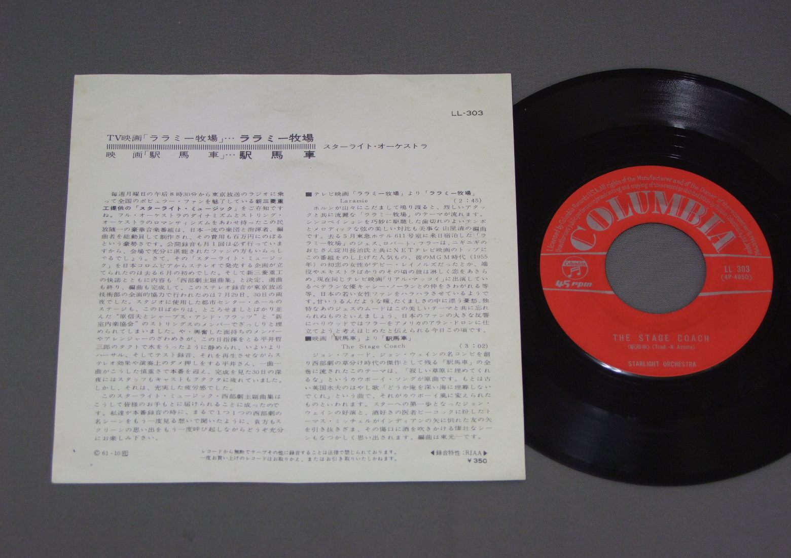 STARLIGHT ORCHESTRA/LARAMIE映画「ララミー牧場」 ララミー牧場 LL303 製造国:日本盤 / Media:7inch外観:EX盤の状態:EX 価格(税込):¥524(売約済) 送料 7inch:定形外郵便 360円~LP:定形外郵便 660円~送料は、注文の最終画面で確認頂けます。 > > STARLIGHT ORCHESTRA/LARAMIE 外観 (EX)特記事項:多少ヨレ有り。外観EXの共通説明:ダメージが限定的。中古品としては保存状態がよい方。シミ、ヨゴレ、スレ 少し~軽度。 盤の状態 (EX)特記事項:薄いスリキズ・スレ軽くある感じ。一見してきれいな印象です。盤EXの共通説明:盤面のスリキズが薄いものが少し~軽度 音に出そうなものは無いように見える(軽微なソフトティック音は除く)。 Tweet それぞれの画像をクリックすると、大きい写真が見られます こちらの商品もお勧めです 770円 CLAUDE LELOUCHクロード・ルルーシュ / LES UNS ET LES AUTRES映画 愛と哀しみのボレロ 1,650円 FRANCIS COPPOLAフランシス・コッポラ / SOUND TRACK APOCALYPSE NOW映画 地獄の黙示録 770円 VANGELISヴァンゲリス / CHARIOTS OF FIREチャリオッツ・オブ・ファイアー 660円 RALPH BURNSラルフ・バーンズ / SOUND TRACK ALL THAT JAZZ映画オール・ザット・ジャズ 770円 ORIGINAL SOUND TRACKオリジナル・サウンドトラック / SUPERMAN 2映画 スーパーマン2 冒険編 550円 YUJIRO ISHIHARA石原裕次郎 / SOUND TRACK FROM NIKKATSU FILM想い出のスクリーン(日活映画サウンドトラックより) 1,320円 無声映画鑑賞会 / おお活動大写真 990円 ORIGINAL SOUND TRACKオリジナル・サウンド・トラック / CHITTY CHITTY BANG BANGチキ・チキ・バン・バン