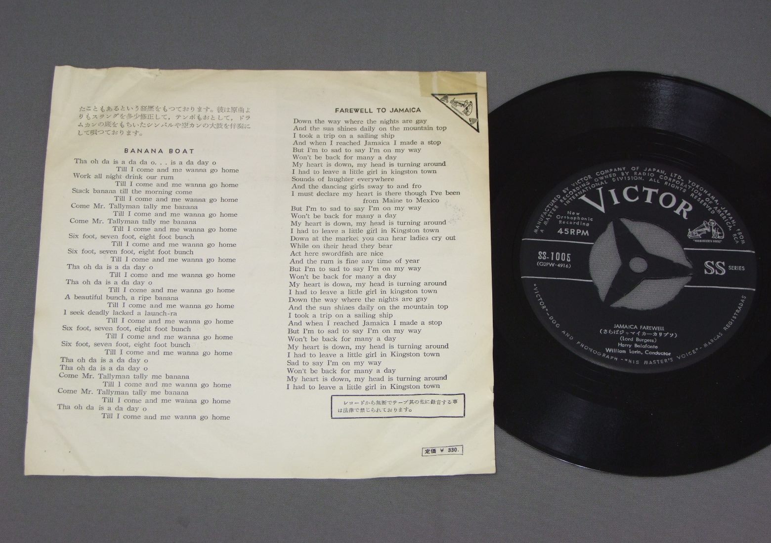 HARRY BELAFONTEハリー・ベラフォンテ/BANANA BOAT-DAY-Oバナナ・ボート〜カリプソ SS1005 製造国:日本盤 / Media:7inch外観:VG+盤の状態:EX 価格(税込):¥524(売約済) 送料 7inch:定形外郵便 360円~LP:定形外郵便 660円~送料は、注文の最終画面で確認頂けます。 > > HARRY BELAFONTE/BANANA BOAT-DAY-O 外観 (VG+)特記事項:ヨレやや有り。日焼けも多少有り。歌詞サイドの右上にテープ跡。外観VG+の共通説明:ダメージやや有り。シミ、ヨゴレ、スレなど多少~やや多め。 盤の状態 (EX)特記事項:薄いスリキズ・スレ軽くある感じ。一見してきれいな印象です。盤EXの共通説明:盤面のスリキズが薄いものが少し~軽度 音に出そうなものは無いように見える(軽微なソフトティック音は除く)。 Tweet それぞれの画像をクリックすると、大きい写真が見られます こちらの商品もお勧めです 770円 J.D. SOUTHERJ.D.サウザー / HOME BY DAWNロマンティック・ナイト 660円 BERTIE HIGGINSバーティ・ヒギンズ / JUST ANOTHER DAY IN PARADISEカサブランカ 1,320円 GEOFF MULDAURジェフ・マルダー / MOTIONモーション 660円 ROBERT GOULETロバート・グーレ / SINCERELY YOURS 60s ISSUEニュー・トップ・ガイ ロバート・グーレは歌う ペラジャケ 550円 ENGELBERT HUMPERDINCKエンゲルベルト・フンパーディンク / LIVE AT THE RIVIERA LAS VEGASライヴ・イン・ラスヴェガス 770円 CHARLES AZNAVOURシャルル・アズナヴール / LA MAMMAラ・マンマ 770円 ELTON JOHNエルトン・ジョン / SINGLE MANシングル・マン 770円 JACKSON BROWNEジャクソン・ブラウン / LIVES IN THE BALANCEライヴズ・イン・ザ・バランス