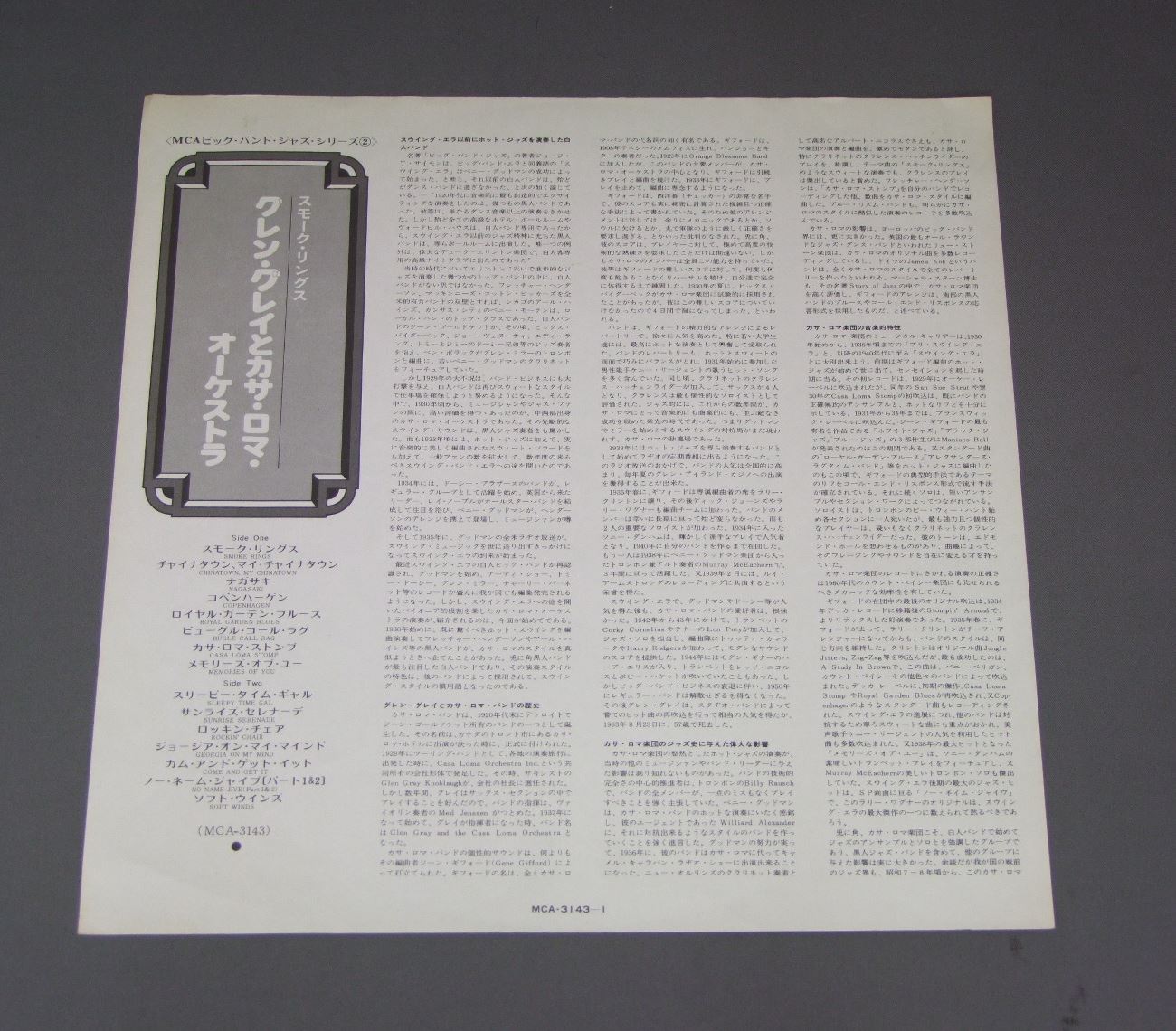 GLEN GRAY AND THE CASA LOMA ORCHESTRA/SMOKE RINGS MCA3143 製造国:日本盤 / Media:LP外観:EX盤の状態:EX+ 価格(税込):¥1,100(売約済) 送料 7inch:定形外郵便 360円~LP:定形外郵便 660円~送料は、注文の最終画面で確認頂けます。 レコード検索 > 全てのジャンル > GLEN GRAY AND THE CASA LOMA ORCHESTRA/SMOKE RINGS 外観 (EX)特記事項:背スレ多少有り。外観EXの共通説明:ダメージが限定的。中古品としては保存状態がよい方。シミ、ヨゴレ、スレ 少し~軽度。 盤の状態 (EX+)特記事項:極薄いスリキズ・スレ少し。一見してきれいな状態です。盤EX+の共通説明:盤面の極薄いスリキズ、スレ少し程度 音に出そうなものは無いように見える(極軽微なソフトティック音は除く)。 Tweet それぞれの画像をクリックすると、大きい写真が見られます こちらの商品もお勧めです 1,210円 JIMMY SMITHジミー・スミス / PORTUGUESE SOULポルトガル・ソウル 1,210円 OSCAR PETERSONオスカー・ピーターソン / BLUES ETUDEジャズ・ピアノの真髄 770円 TERUMASA HINO日野皓正 / DOUBLE RAINBOWダブル・レインボー 770円 TEDDY CHARLES TENTETテディ・チャールズ・テンテット / TEDDY CHARLES TENTETテディ・チャールズ・テンテット 1,650円 MASARU IMADA今田勝 / DAY IN THE PARADISEコーラルの涙 990円 BILL HOLMANビル・ホルマン / BIG BAND IN A JAZZ ORBITビッグ・バンド・イン・ア・ジャズ・オービット 1,210円 EUGEN CICEROオイゲン・キケロ・トリオ / ROKOKO-JAZZロココ・ジャズ 770円 CHICK COREAチック・コリア / PIANO IMPROVISATIONS VOL1チック・コリア・ソロ VOL1