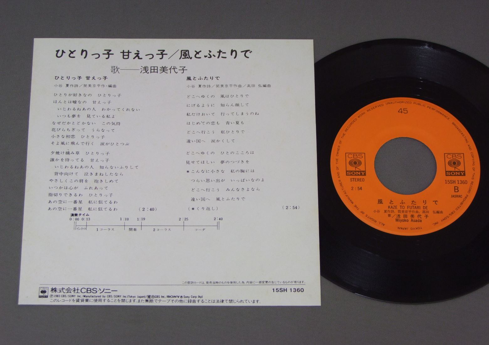 MIYOKO ASADA浅田美代子/HITORIKKO AMAEKKOひとりっ子 甘えっ子 15SH1360 製造国:日本盤 / Media:7inch外観:EX盤の状態:EX+ 価格(税込):¥330 送料 7inch:定形外郵便 360円~LP:定形外郵便 660円~送料は、注文の最終画面で確認頂けます。 > > MIYOKO ASADA/HITORIKKO AMAEKKO 外観 (EX)特記事項:右下にホッチキス穴。外観EXの共通説明:ダメージが限定的。中古品としては保存状態がよい方。シミ、ヨゴレ、スレ 少し~軽度。 盤の状態 (EX+)特記事項:極薄いスリキズ・スレ少し。一見してきれいな状態です。盤EX+の共通説明:盤面の極薄いスリキズ、スレ少し程度 音に出そうなものは無いように見える(極軽微なソフトティック音は除く)。 Tweet それぞれの画像をクリックすると、大きい写真が見られます こちらの商品もお勧めです 1,210円 PINK LADYピンク・レディー / AMERICA ! AMERICA ! AMERICA !アメリカ!アメリカ!アメリカ! 770円 YOSHIE KASHIWABARA柏原よしえ / SUMMER SENSATIONサマー・センセイション 770円 SEIKO MATSUDA松田聖子 / SEIKO TOWN 1,210円 SAYURI KOKUSHO国生さゆり / TRANSIT 660円 YOU HAYAMI早見優 / IMAGEイマージュ 880円 SONOKO KAWAI河合その子 / SONOKOその子 550円 SONOKO KAWAI河合その子 / SONOKOその子 440円 ERI E-AREA新田恵利 / ERI E-AREA