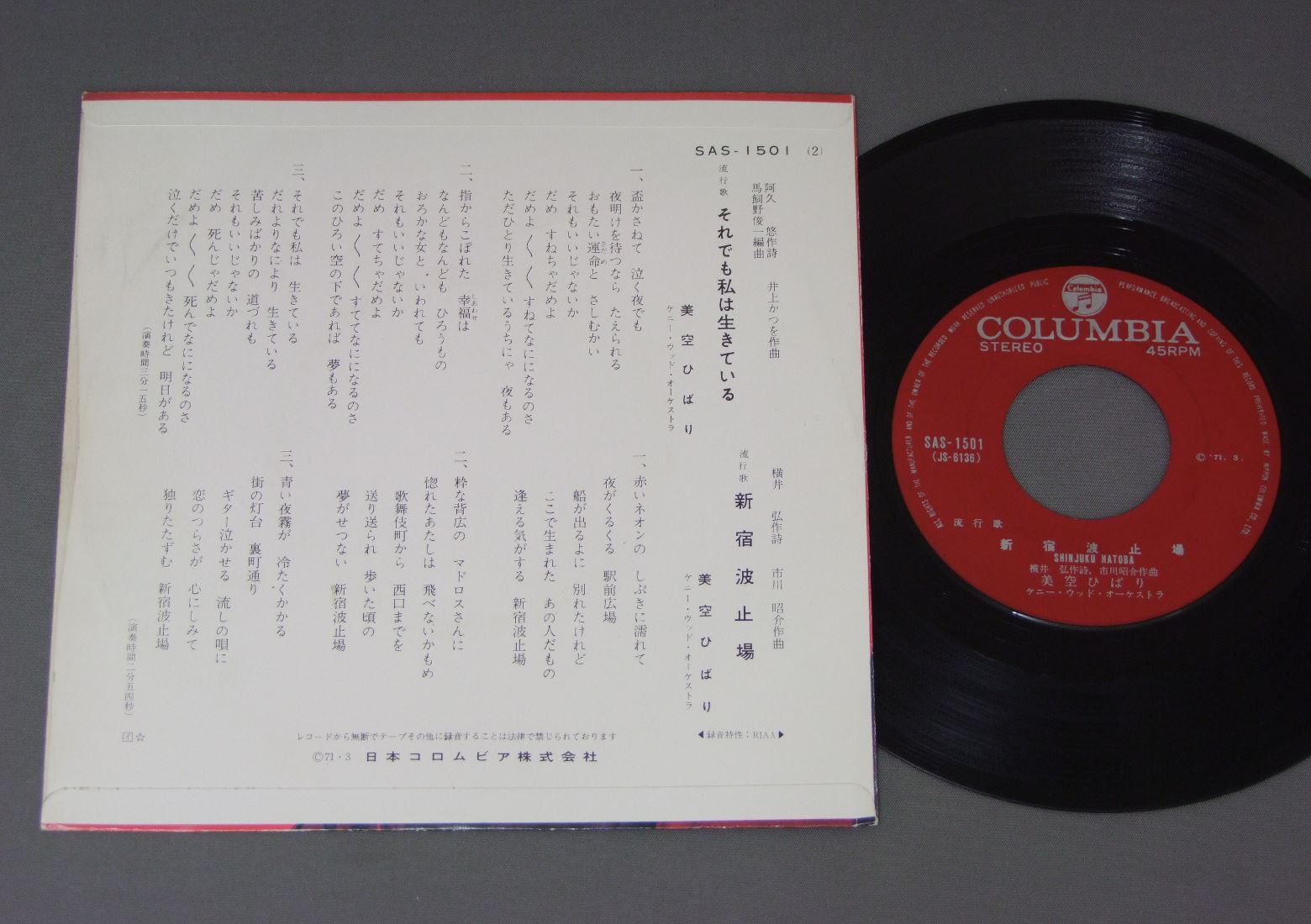 HIBARI MISORA美空ひばり/ それでも私は生きている SAS1501 製造国:日本盤 / Media:7inch外観:EX盤の状態:EX- 価格(税込):¥440(売約済) 送料 7inch:定形外郵便 360円~LP:定形外郵便 660円~送料は、注文の最終画面で確認頂けます。 > > HIBARI MISORA/ 盤の状態 (EX-)特記事項:薄いスリキズ・細かい表面スレ多少ある感じです。プチ出そうな所は少し。軽微なものが中心の様子です。盤EX-の共通説明:盤面のスリキズが多少有り。音に出そうなものは殆ど無いように見える~さほど気にならないぐらいの軽いプチ数カ所程度。 Tweet それぞれの画像をクリックすると、大きい写真が見られます こちらの商品もお勧めです 880円 村田英雄-青山和子-安達明 他 / コロムビア歌のハイライト (第五集) 990円 YOSHIO TABATA田端義夫 / BEST ALBUM歌道ひと筋三十年 田端義夫の傑作全集 心の唄 770円 三浦洸一 / ゴールデン・ヒット 880円 上原敏 / ポリドール(SP原盤)シリーズ -第6集- 哀愁の抒情・マドロス歌謡 1,210円 高峰秀子-橋幸夫 他 / 続 日本流行歌史 770円 MIEKO TAKAMINE高峰三枝子 / SONG ALBUM高峰三枝子 歌のアルバム 660円 MISAO MATSUBARA松原操 / COLLECTION VOL2第ニ集-浮草の唄 1,210円 KEIICHIRO AKAGI赤木圭一郎 / EIEN-NO-TONY永遠のトニー 赤木圭一郎絶唱集