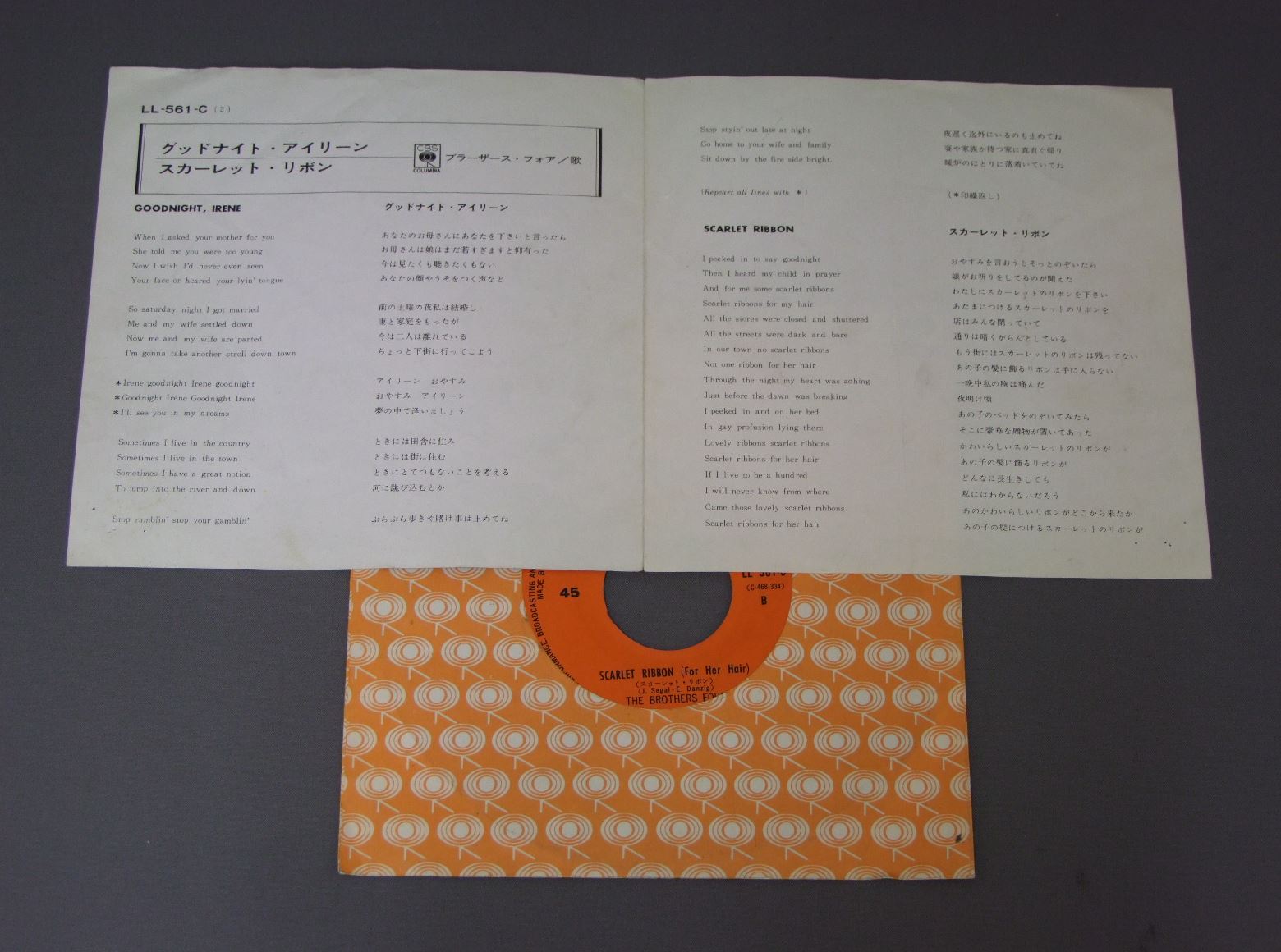 BROTHERS FOURブラザーズ・フォア/GOODNIGHT IRENEグッドナイト・アイリーン LL561C 製造国:日本盤 / Media:7inch外観:VG+盤の状態:VG+ 価格(税込):¥440(売約済) 送料 7inch:定形外郵便 360円~LP:定形外郵便 660円~送料は、注文の最終画面で確認頂けます。 > > BROTHERS FOUR/GOODNIGHT IRENE 外観 (VG+)特記事項:右下にホッチキス穴。背下に短い切れ。裏ジャケに折れ跡や薄いよごれ。ヨレやや有り。外観VG+の共通説明:ダメージやや有り。シミ、ヨゴレ、スレなど多少~やや多め。 盤の状態 (VG+)特記事項:薄いスリキズ・細かいスレやや多め。全体的には軽微なものが中心です。少し聴いてみましたが、音自体はしっかり鳴っているようでした。盤VG+の共通説明:盤面にスリキズが多少~やや有り、音に出そうなものも多少ある。 Tweet それぞれの画像をクリックすると、大きい写真が見られます こちらの商品もお勧めです 770円 BROTHERS FOURブラザース・フォア / HONEY WIND BLOWSビッグ・フォーク・ヒッツ 第3集 770円 NITTY GRITTY DIRT BANDニッティー・グリッティー・ダート・バンド / UNCLE CHARLIE & HIS DOG TEDDYアンクル・チャーリーと愛犬テディー 1,320円 JOAN BAEZジョーン・バエズ / GULF WINDSガルフ・ウィンズ 770円 PETER PAUL&MARYピーター・ポール&マリー / LATE AGAINレイト・アゲイン 990円 BANJO BARONSバンジョー・バロンズ / IT`S A FOLK FOLK FOLK FOLK WORLDバンジョー. フォーク・ソングの世界 ペラジャケ 770円 NITTY GRITTY DIRT BANDニッティー・グリッティー・ダート・バンド / STARS&STRIPES FOREVER星条旗よ永遠なれ! 660円 JOAN BAEZジョーン・バエズ / JOAN自由の女神 990円 KITTY WELLSキティ・ウェルズ / DUST ON THE BIBLEダスト・オン・ザ・バイブル