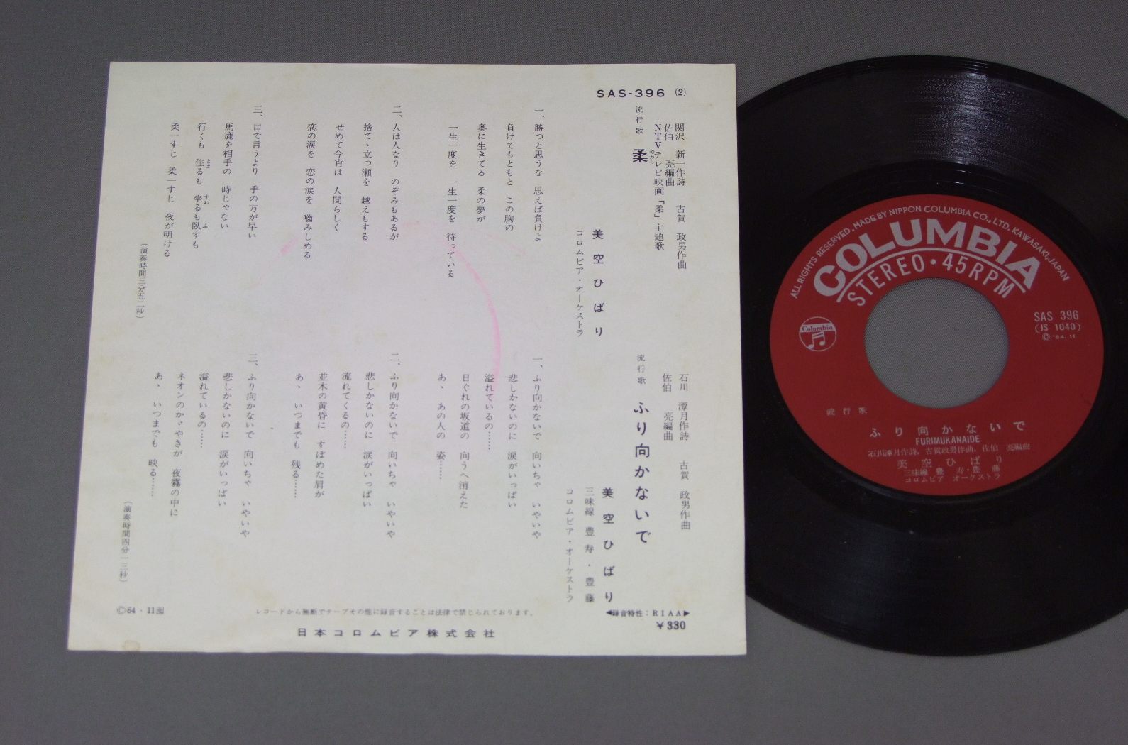 HIBARI MISORA美空ひばり/ YAWARA柔 SAS396 製造国:日本盤 / Media:7inch外観:EX-盤の状態:EX 価格(税込):¥1,981(売約済) 送料 7inch:定形外郵便 360円~LP:定形外郵便 660円~送料は、注文の最終画面で確認頂けます。 > > HIBARI MISORA/ YAWARA 外観 (EX-)特記事項:裏側にシミ軽多少有り。外観EX-の共通説明:ダメージ軽度~多少。 中古品としては普通の状態。シミ、ヨゴレ、スレなど軽く~多少。 盤の状態 (EX)特記事項:薄いスリキズ・スレ軽くある感じ。一見してきれいな印象です。盤EXの共通説明:盤面のスリキズが薄いものが少し~軽度 音に出そうなものは無いように見える(軽微なソフトティック音は除く)。 Tweet それぞれの画像をクリックすると、大きい写真が見られます こちらの商品もお勧めです 660円 MISAO MATSUBARA松原操 / COLLECTION VOL2第ニ集-浮草の唄 880円 上原敏 / ポリドール(SP原盤)シリーズ -第6集- 哀愁の抒情・マドロス歌謡 660円 KOJO TSURUTA鶴田浩二 / RED AND BLACK BLUES赤と黒のブルース 880円 KEN TSUMURA津村謙 / KAYO ALBUM津村謙歌謡アルバム 770円 MIEKO TAKAMINE高峰三枝子 / SONG ALBUM高峰三枝子 歌のアルバム 880円 村田英雄-青山和子-安達明 他 / コロムビア歌のハイライト (第五集) 770円 三浦洸一 / ゴールデン・ヒット 880円 上原敏 / 憶い出の任侠・時代歌謡-ポリドール SP原盤 シリーズ