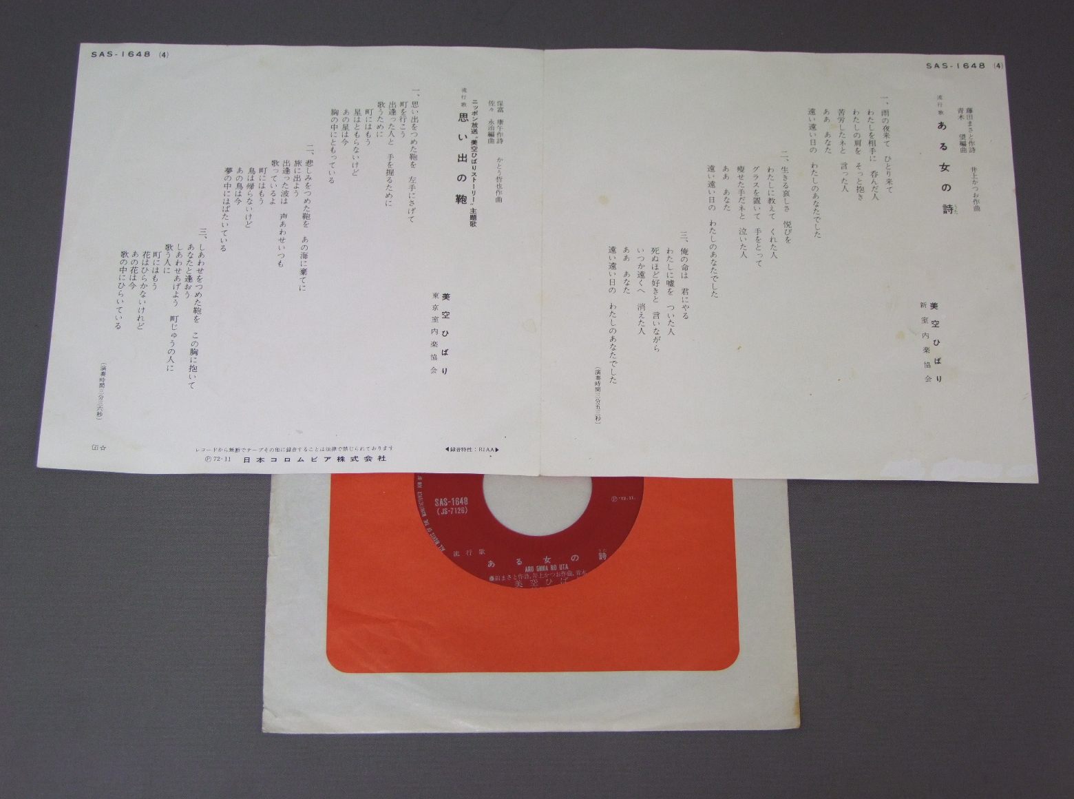 HIBARI MISORA美空ひばり/ ARU ONNA NO UTAある女の詩 SAS1648 製造国:日本盤 / Media:7inch外観:EX盤の状態:EX 価格(税込):¥330(売約済) 送料 7inch:定形外郵便 360円~LP:定形外郵便 660円~送料は、注文の最終画面で確認頂けます。 > > HIBARI MISORA/ ARU ONNA NO UTA 外観 (EX)特記事項:見開きに薄いシミあり。外観EXの共通説明:ダメージが限定的。中古品としては保存状態がよい方。シミ、ヨゴレ、スレ 少し~軽度。 盤の状態 (EX)特記事項:薄いスリキズ・スレ軽くある感じ。殆どが軽微なものの様子です。盤EXの共通説明:盤面のスリキズが薄いものが少し~軽度 音に出そうなものは無いように見える(軽微なソフトティック音は除く)。 Tweet それぞれの画像をクリックすると、大きい写真が見られます こちらの商品もお勧めです 1,320円 藤山一郎 - 美空ひばり - 高峰三枝子 - 織井茂子 他 / ベスト20 特選-映画主題歌集 (2) 550円 HISAO ITO伊藤久男 / BEST ALBUM懐しの歌声 伊藤久男と共に 1,210円 HACHIRO KASUGA春日八郎 / HACHIRO KASUGA HIT ALBUM春日八郎 -魅力のすべて- 770円 三浦洸一 / ゴールデン・ヒット 1,210円 高峰秀子-橋幸夫 他 / 続 日本流行歌史 660円 CHIEKO SATOH佐藤千夜子 / BEST COLLECTIONオリジナル原盤による懐しの歌声シリーズ4 東京行進曲 770円 YUJIRO ISHIHARA石原裕次郎 / YUJIRO ISHIHARA ORIGINAL BEST石原裕次郎オリジナルベスト 660円 MISAO MATSUBARA松原操 / COLLECTION VOL2第ニ集-浮草の唄