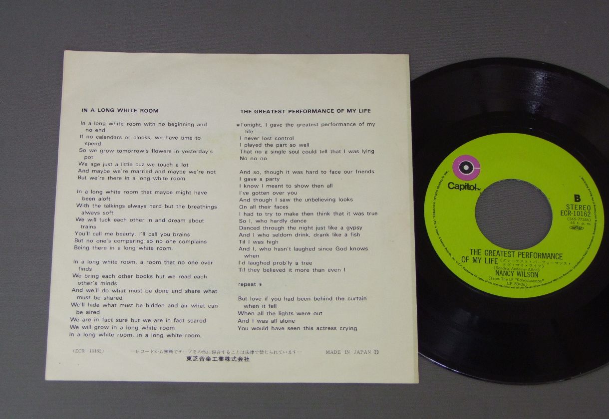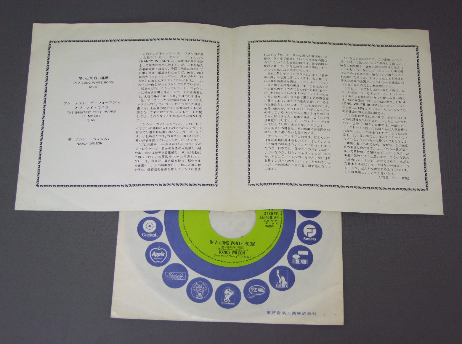NANCY WILSONナンシー・ウィルスン/IN A LONG WHITE ROOM想い出の白い部屋 ECR10162 製造国:日本盤 / Media:7inch外観:EX-盤の状態:EX 価格(税込):¥1,760(売約済) 送料 7inch:定形外郵便 360円~LP:定形外郵便 660円~送料は、注文の最終画面で確認頂けます。 > > NANCY WILSON/IN A LONG WHITE ROOM 外観 (EX-)特記事項:多少日焼け感あり。外観EX-の共通説明:ダメージ軽度~多少。 中古品としては普通の状態。シミ、ヨゴレ、スレなど軽く~多少。 盤の状態 (EX)特記事項:薄いスリキズ・スレ軽くある感じ。軽微なものの様子です。盤EXの共通説明:盤面のスリキズが薄いものが少し~軽度 音に出そうなものは無いように見える(軽微なソフトティック音は除く)。 Tweet それぞれの画像をクリックすると、大きい写真が見られます こちらの商品もお勧めです 1,210円 GRANDMASTER FLASHグランドマスター・フラッシュ / SOURCEソース 770円 DIANA ROSSダイアナ・ロス / WHY DO FOOLS FALL IN LOVEファースト・レディ 770円 THREE DEGREES & MFSBスリー・ディグリーズ &MFSB / THREE DEGREES & MFSB SHOWスリー・ディグリーズ &MFSBショー 1,320円 DELLSデルズ / THERE ISゼア・イズ 770円 DIANA ROSSダイアナ・ロス / ROSSロス 770円 MARTHA REEVESマーサ・リーブス / 1st ALBUMソロ・ファースト 770円 RAY GOODMAN & BROWNレイ、グッドマン&ブラウン / OPEN UPこの愛に気づいたら 990円 DIANA ROSSダイアナ・ロス / ROSSロス