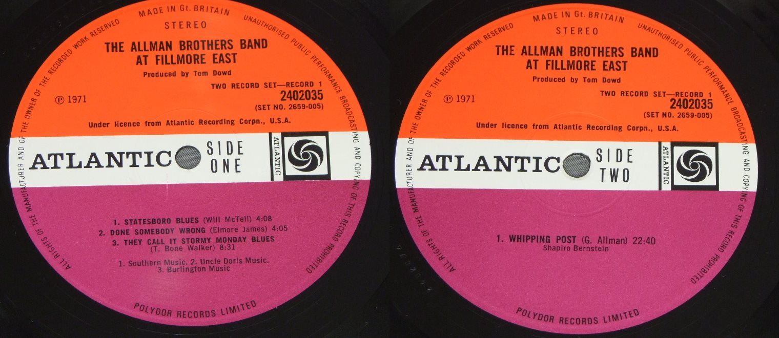 ALLMAN BROTHERS BAND/AT FILLMORE EAST 2402035/6 製造国:英国盤 / Media:LPMatrix:A//1 | B//1 | A//1 | B//3外観:EX盤の状態:EX+ 価格(税込):¥16,500(売約済) 送料 7inch:定形外郵便 360円~LP:定形外郵便 660円~送料は、注文の最終画面で確認頂けます。 > > ALLMAN BROTHERS BAND/AT FILLMORE EAST 外観 (EX)特記事項:米国製のジャケに英国ナンバーのステッカーが貼られています。英国では特に英国製のジャケは作成されなかったようです。 背や上下へりすれ多いです。ジャケ表面は軽いスレや薄いよごれは多少有る感じですが、全体的にヨレ感の無いしっかりした状態。見開きはスレの無いきれいな状態。外観EXの共通説明:ダメージが限定的。中古品としては保存状態がよい方。シミ、ヨゴレ、スレ 少し~軽度。 盤の状態 (EX+)特記事項:極薄いスリキズ・スレ少しある程度。音に出そうなものもなく一見してきれいな状態です。曲間など、静かなところを中心に聴いて見ましたが、チリノイズ少ないきれいな再生具合でした。盤EX+の共通説明:盤面の極薄いスリキズ、スレ少し程度 音に出そうなものは無いように見える(極軽微なソフトティック音は除く)。 その他:RECORD2のマトリックスに修正有り。 Tweet それぞれの画像をクリックすると、大きい写真が見られます こちらの商品もお勧めです 2,750円 RASCALS / TIME PEACE RASCALS GREATEST HITS 6,050円 ALLMAN BROTHERS BAND / WIPE THE WINDOWS 4,950円 BIG BROTHER AND THE HOLDING CO / BE A BROTHER 5,500円 HUMIMGBIRD / HUMIMNGBIRD 9,900円 BIG BROTHER AND HOLDING COMPAMY / SAME TITLE / MONO 4,400円 AREA CODE 615 / TRIP IN THE COUNTRY 7,700円 BLUE JAG / SAME TITLE